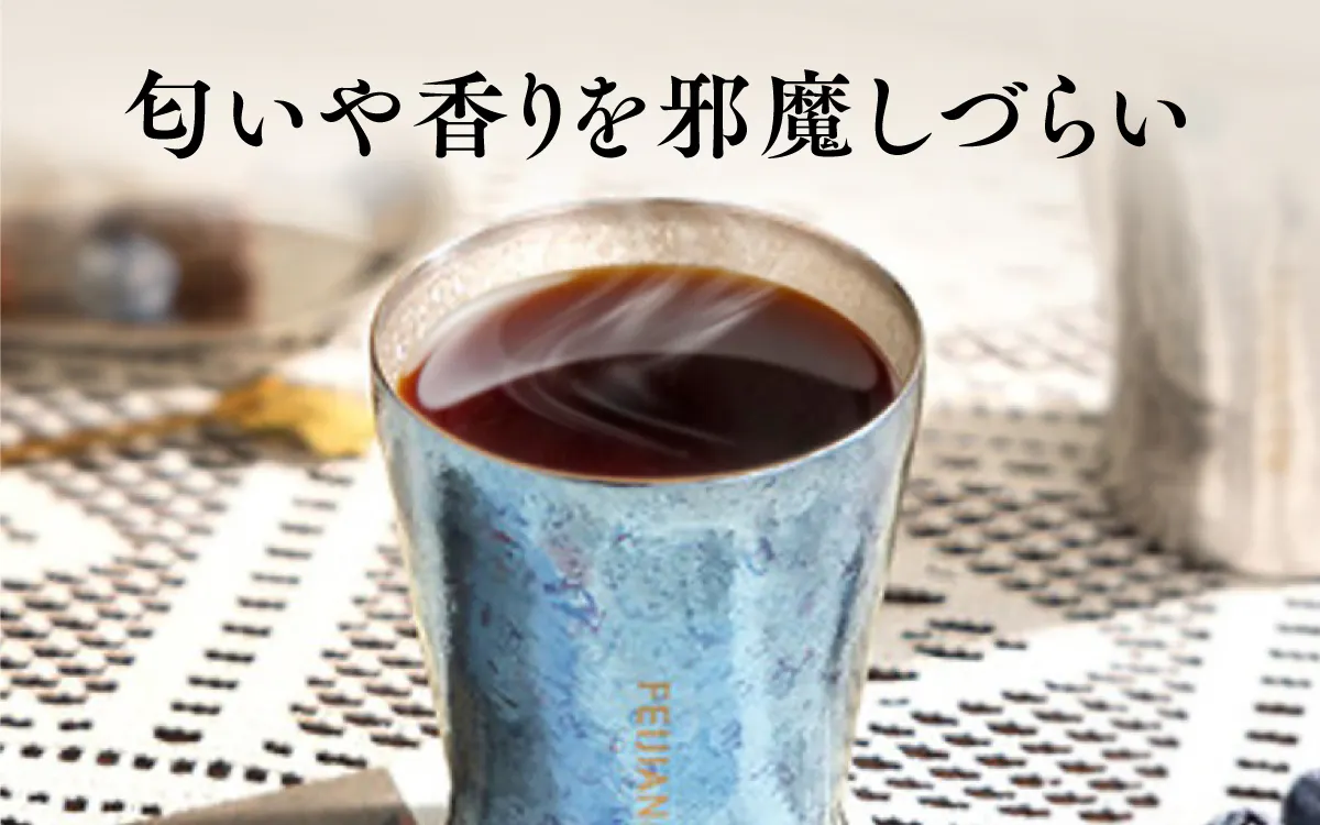 飲み物は毎日飲むものですし、飲みながら語っている時に「いつもと味が違う!」となると、そっちの方が気になりますよね。FEIJIANチタンコップは、そんなお悩みを解決しています。