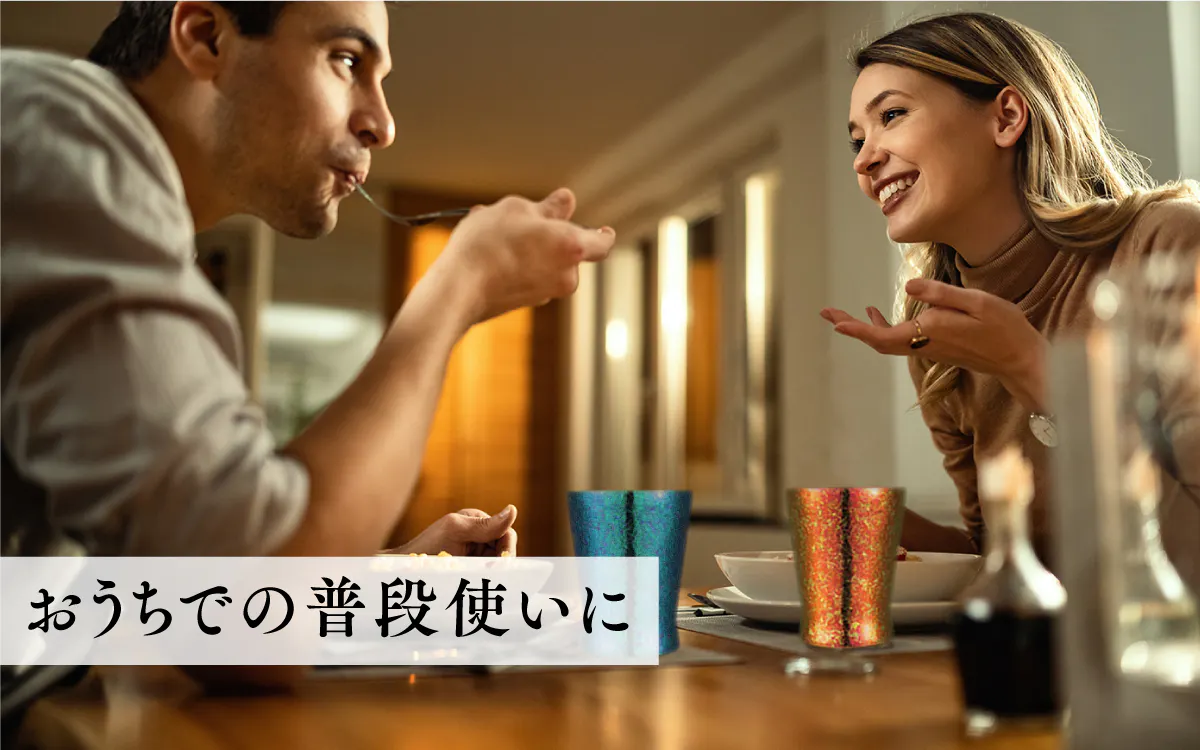 語り合いながら飲む時は、飲み口が広めのコップがおすすめです。