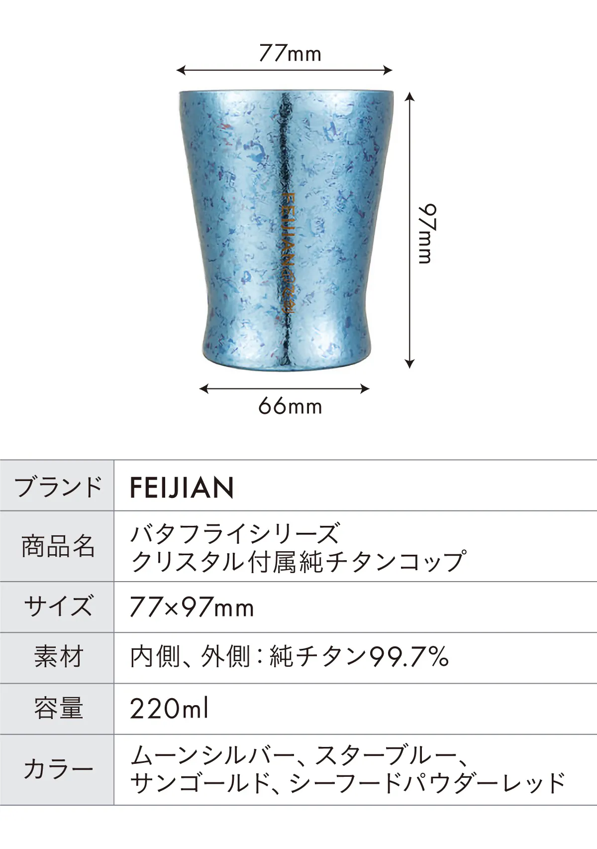 FEIJIANを生涯添い遂げるチタンコップとして、ご愛用いただければ大変嬉しく思います。