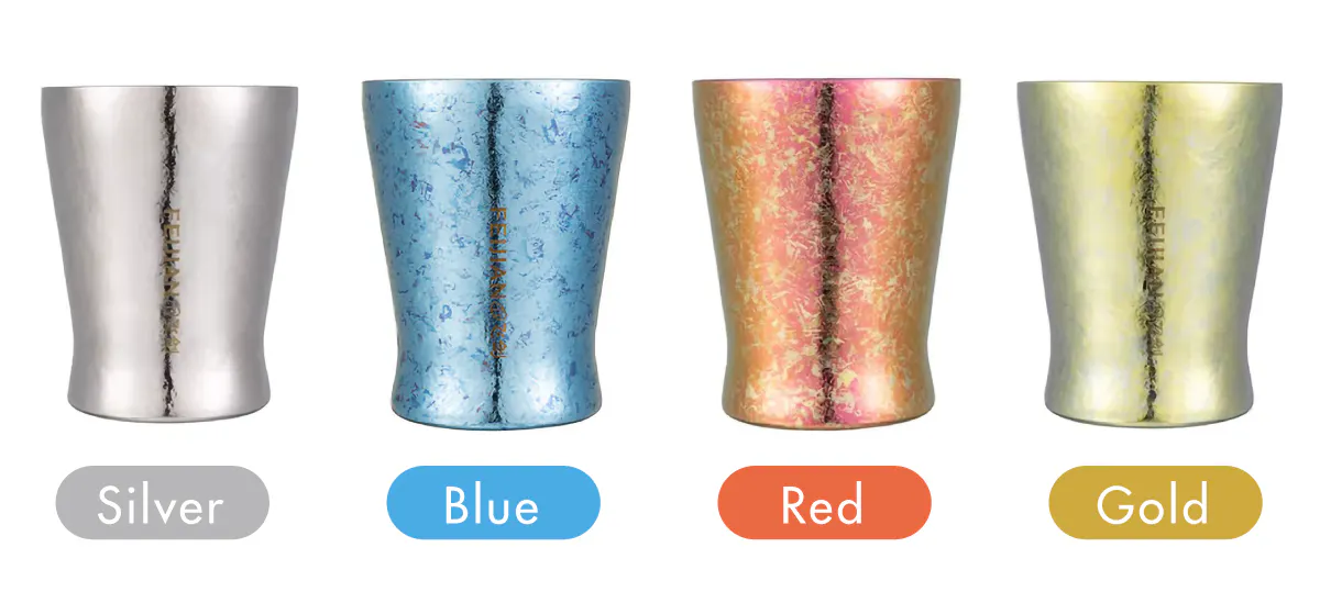 いつまでも使えるチタンコップだからこそ、好みを選びやすいように、4つのカラーをご用意しました。