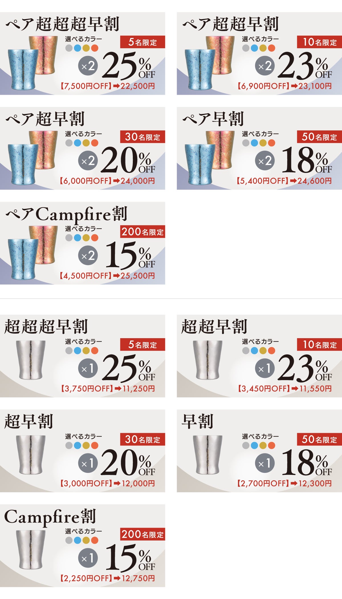 ペア割の場合は、以下の4色からお好きな色を2つ。