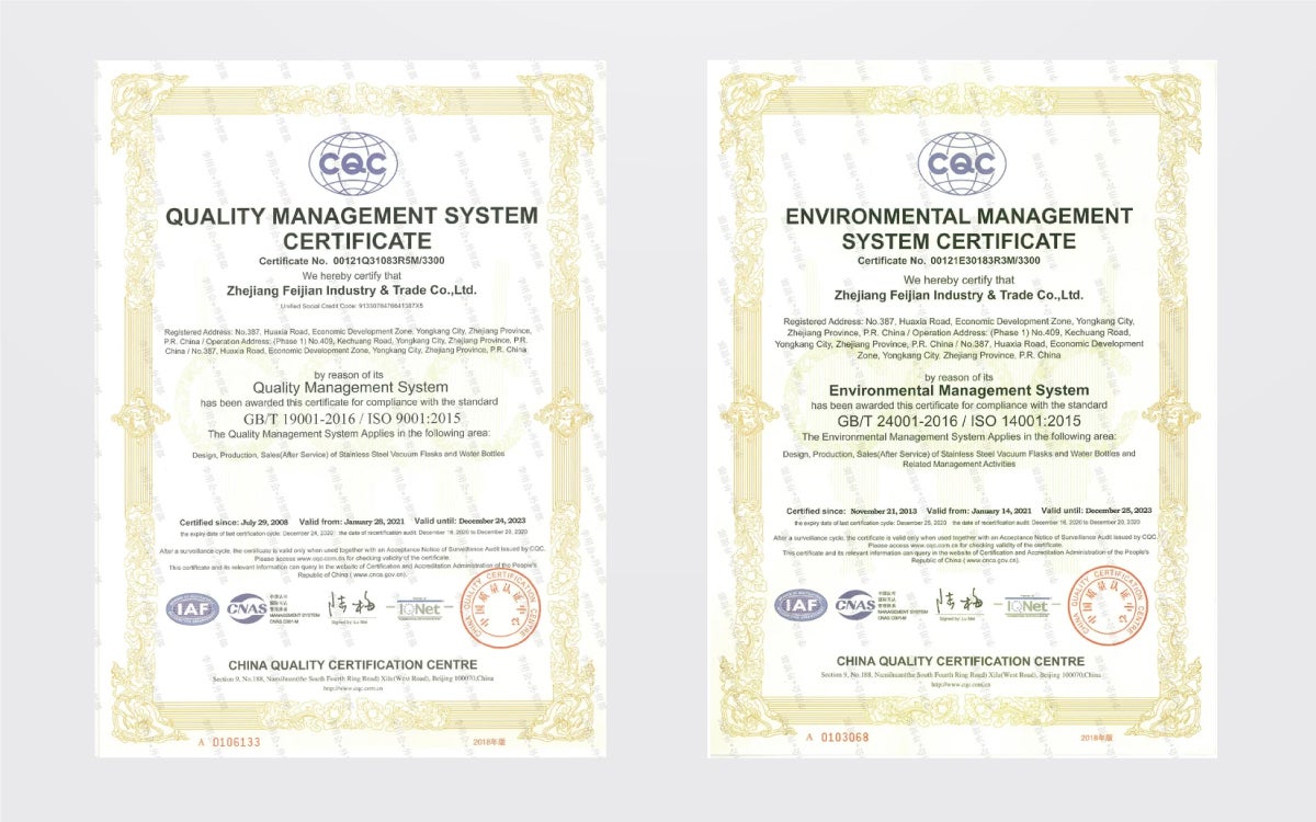 Feijian(フェイジャン)社は、中国浙江省にて2004年に設立されてから、ステンレス製魔法びんやチタン製品を積極的に企画開発して、製造・販売する世界的トップメーカーです。
