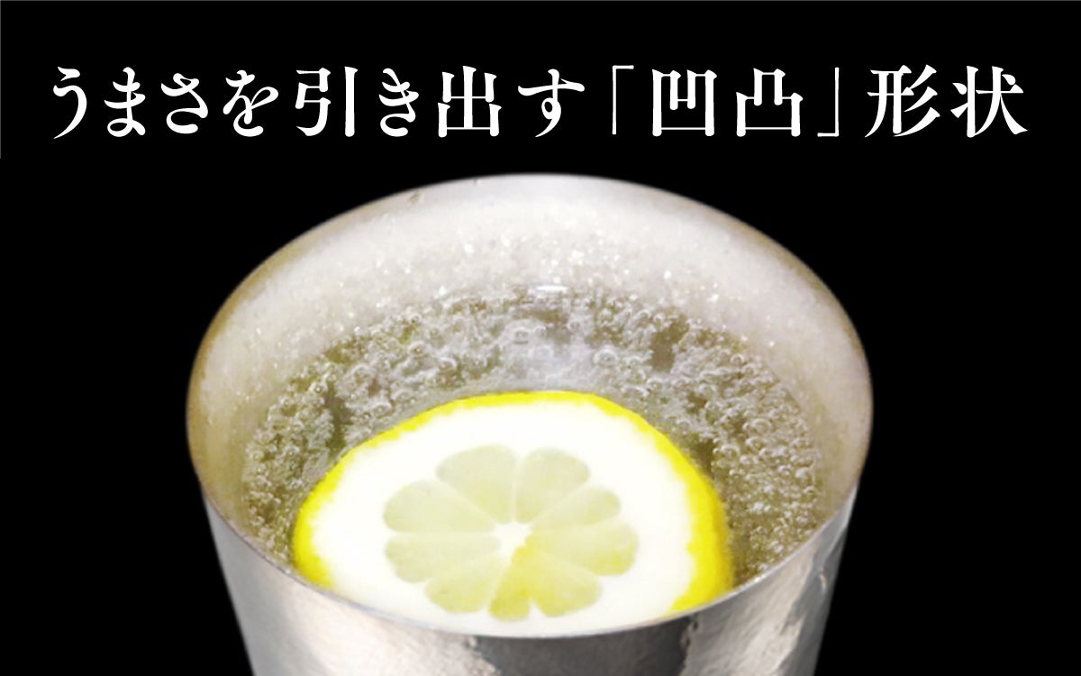 美味しさの要である泡は、飲み物を注いだ時に、ドリンクの炭酸ガスが凹凸にあたることで生まれる仕組み。