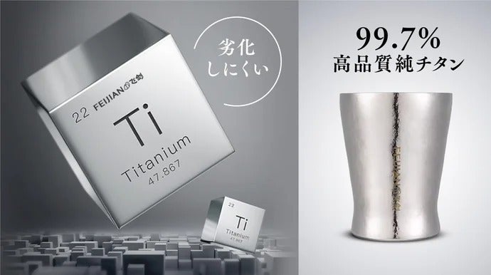 FEIJIANチタンコップが採用しているチタンは、99.7%の高品質純チタンです。