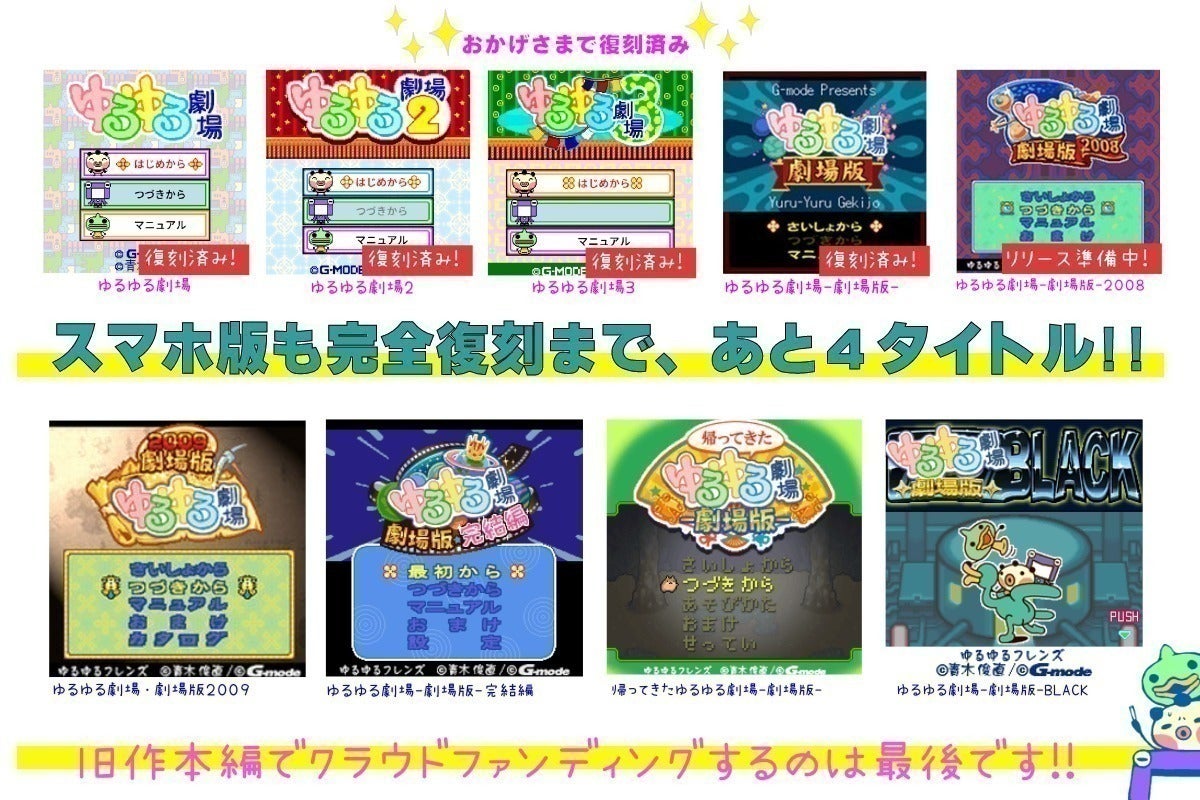 Nintendo Switch DLソフトに関しては「ゆるゆる劇場-劇場版-三部作」を2023年7月13日(前売り7月6日開始)に発売することにより、最終作のBLACKまでの販売が実現しました。