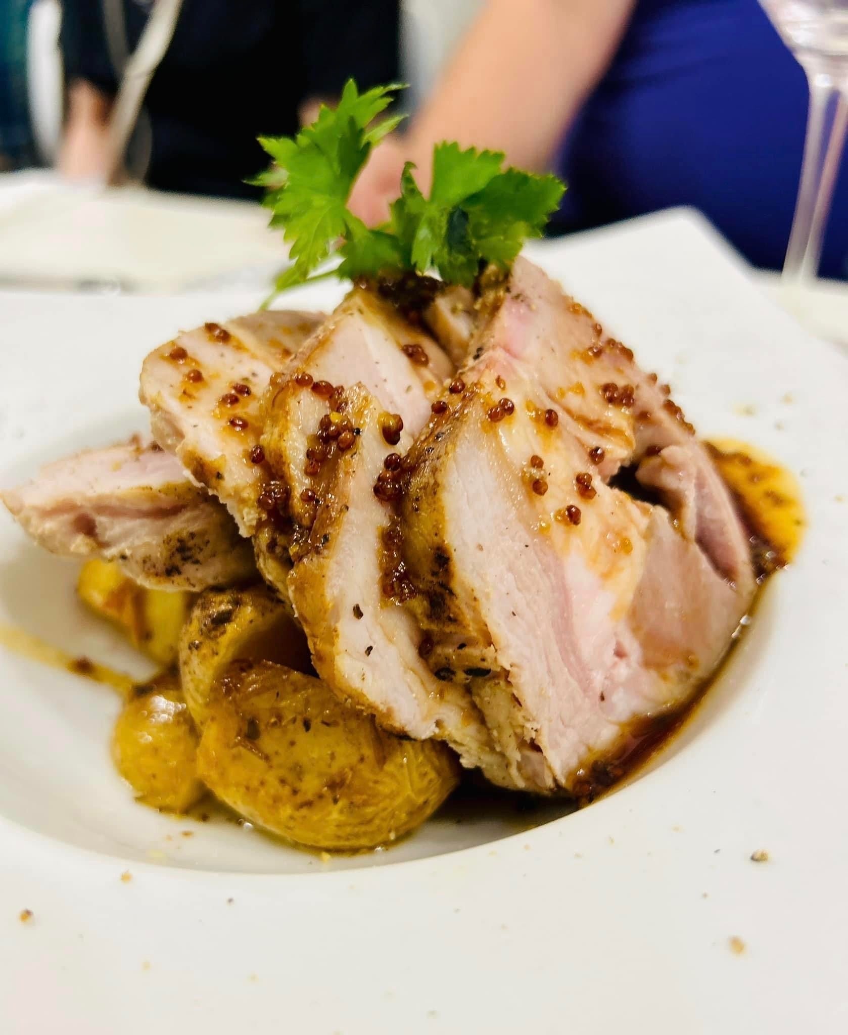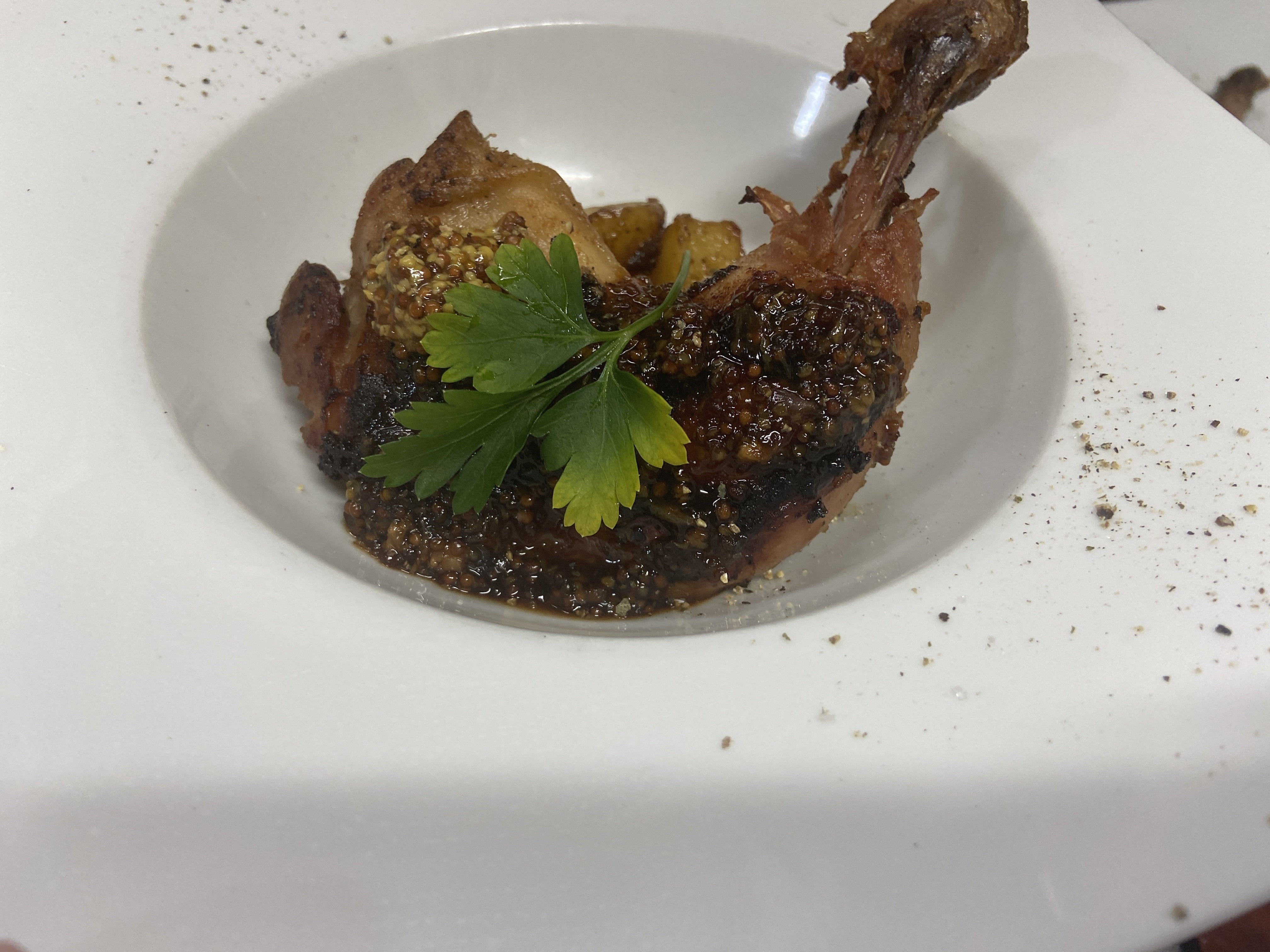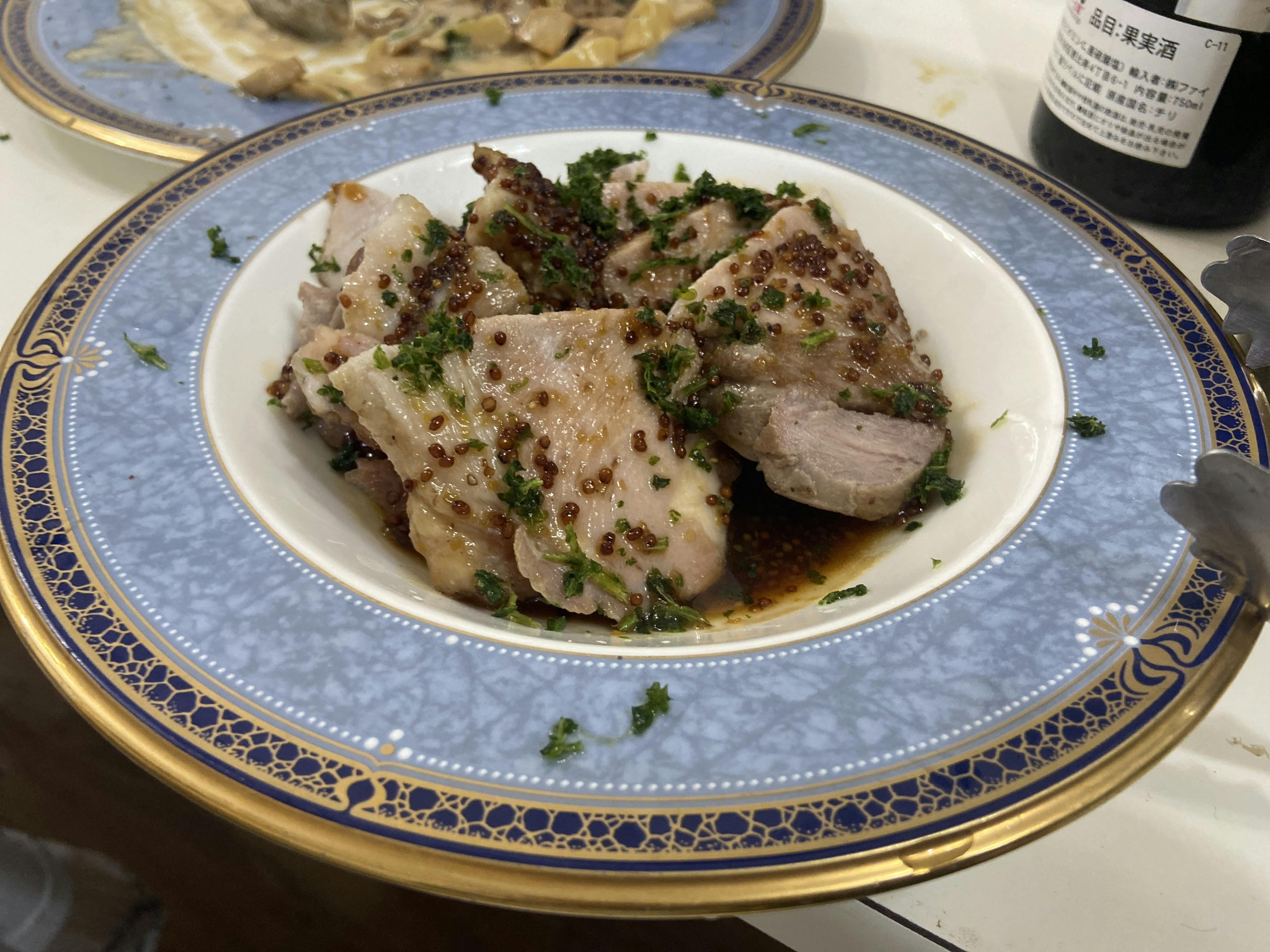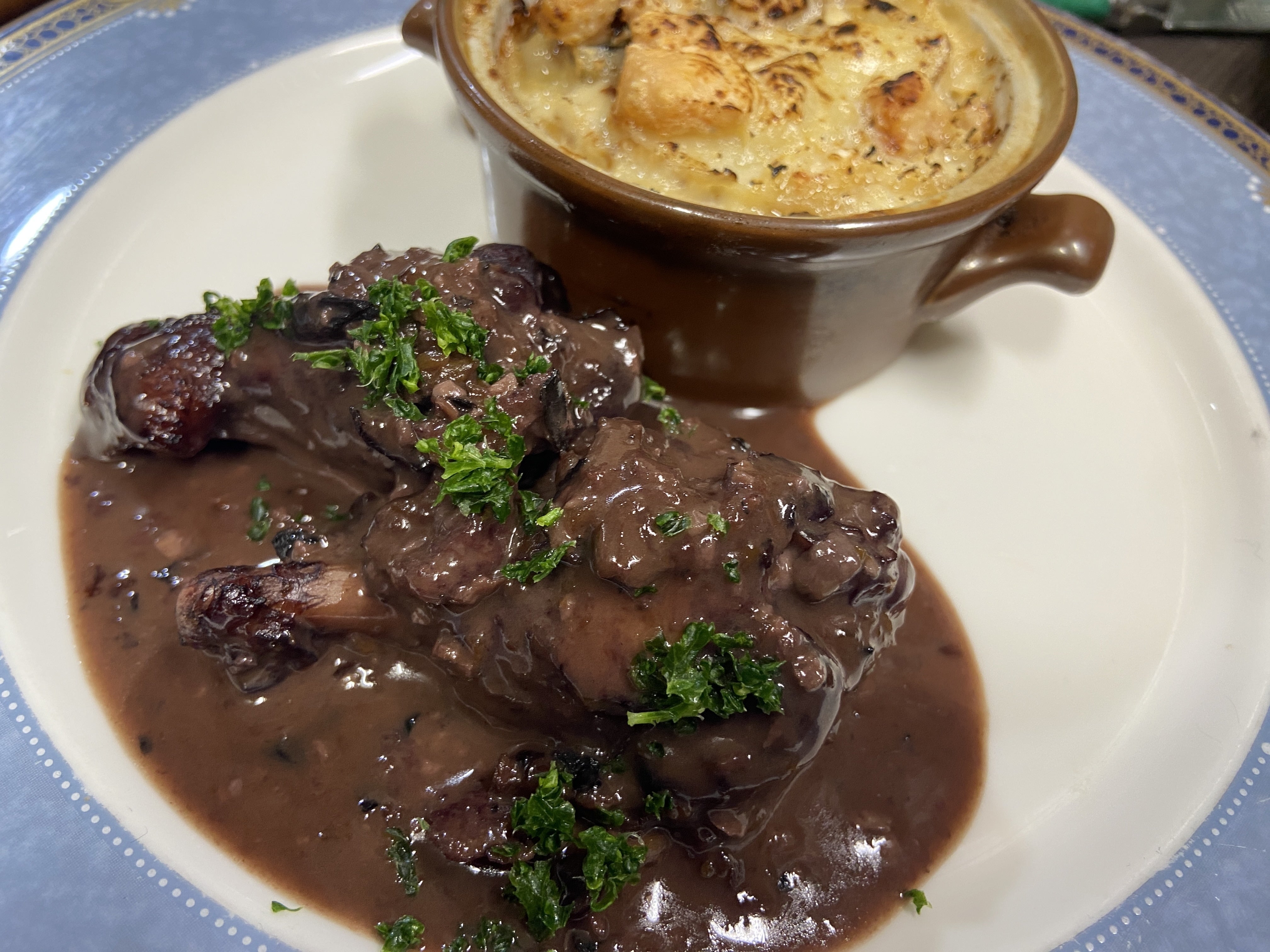 コックオーヴァン(鶏の赤ワイン煮込み、グラタンドフィノワ、ジャンボンペルシエ)