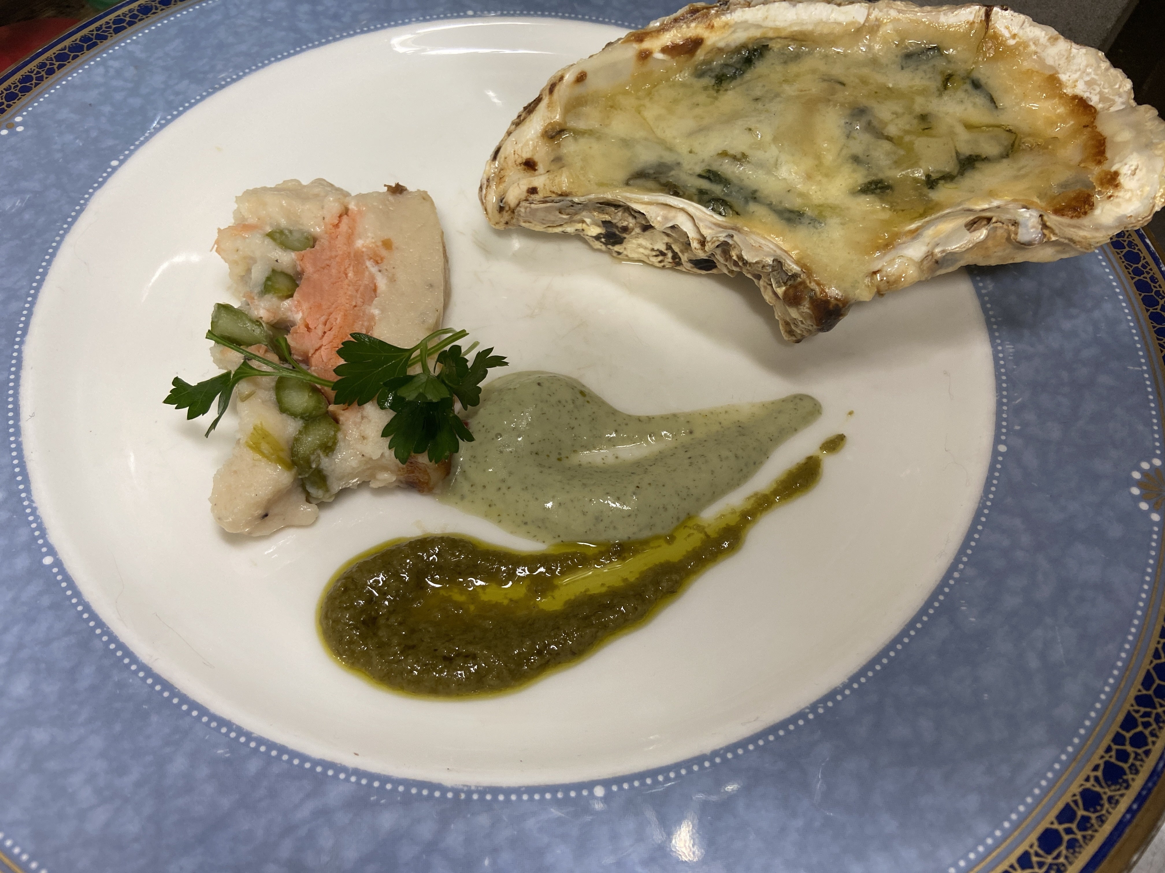 牡蠣のシャンパニュ風、サーモンテリーヌ、
