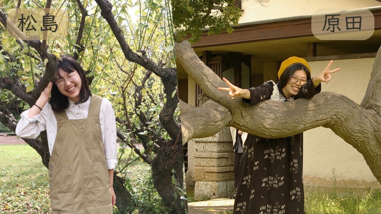 大学2年の原田朋子(はらだともこ)・松島希実(まつしまのぞみ)です。