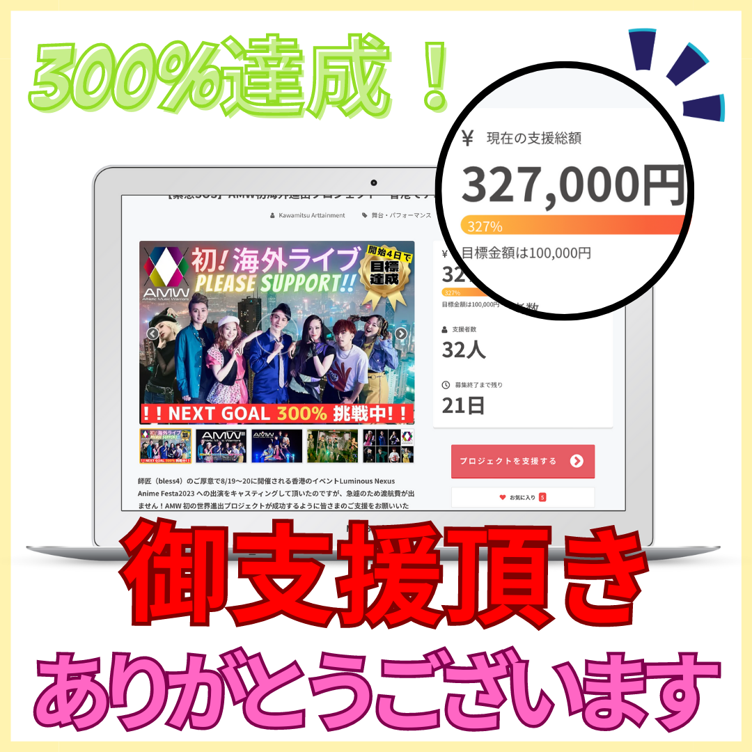 先ほどネクストゴール300%達成いたしました!!