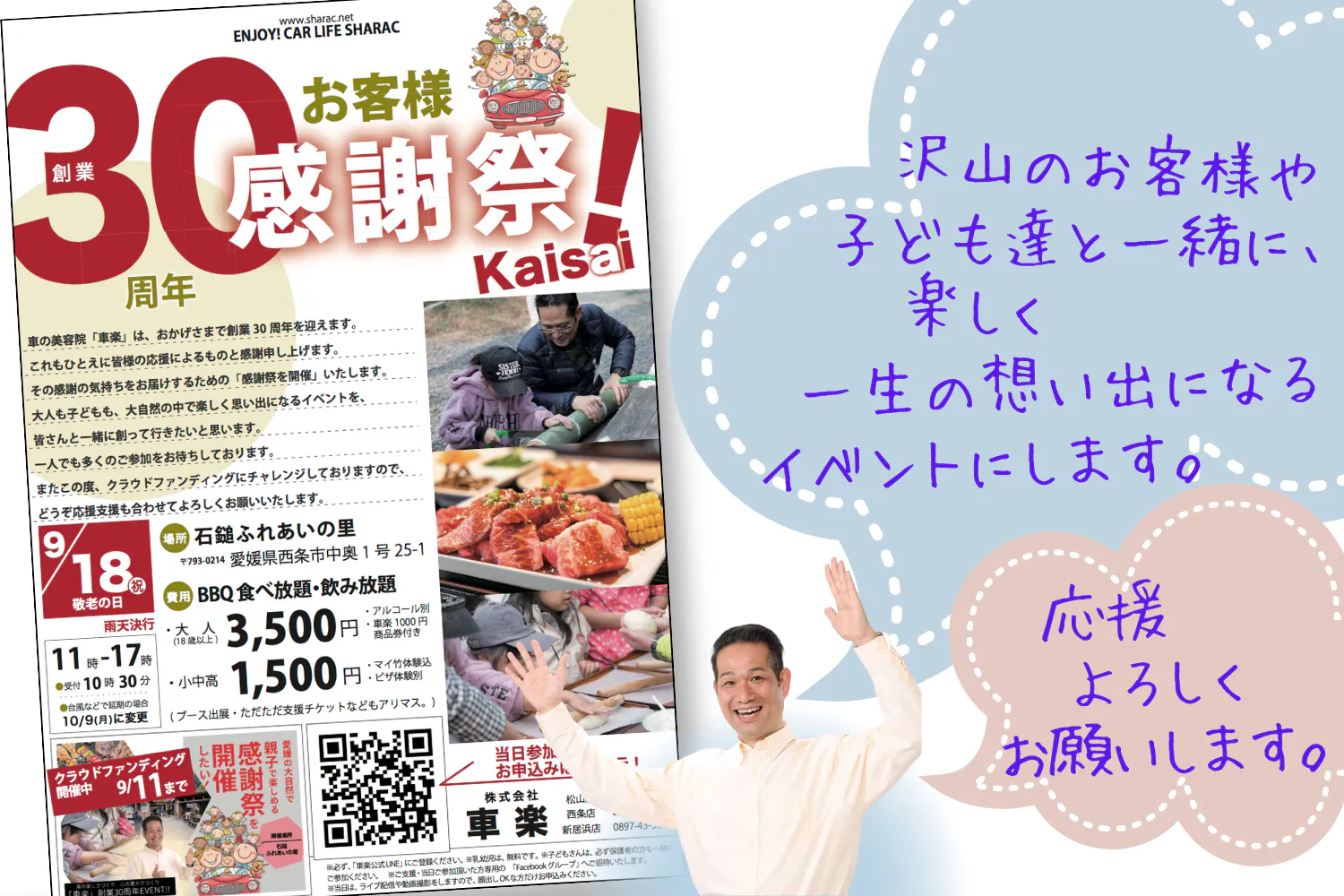 大人:3,500円(車楽1,000円商品券付)18歳以上