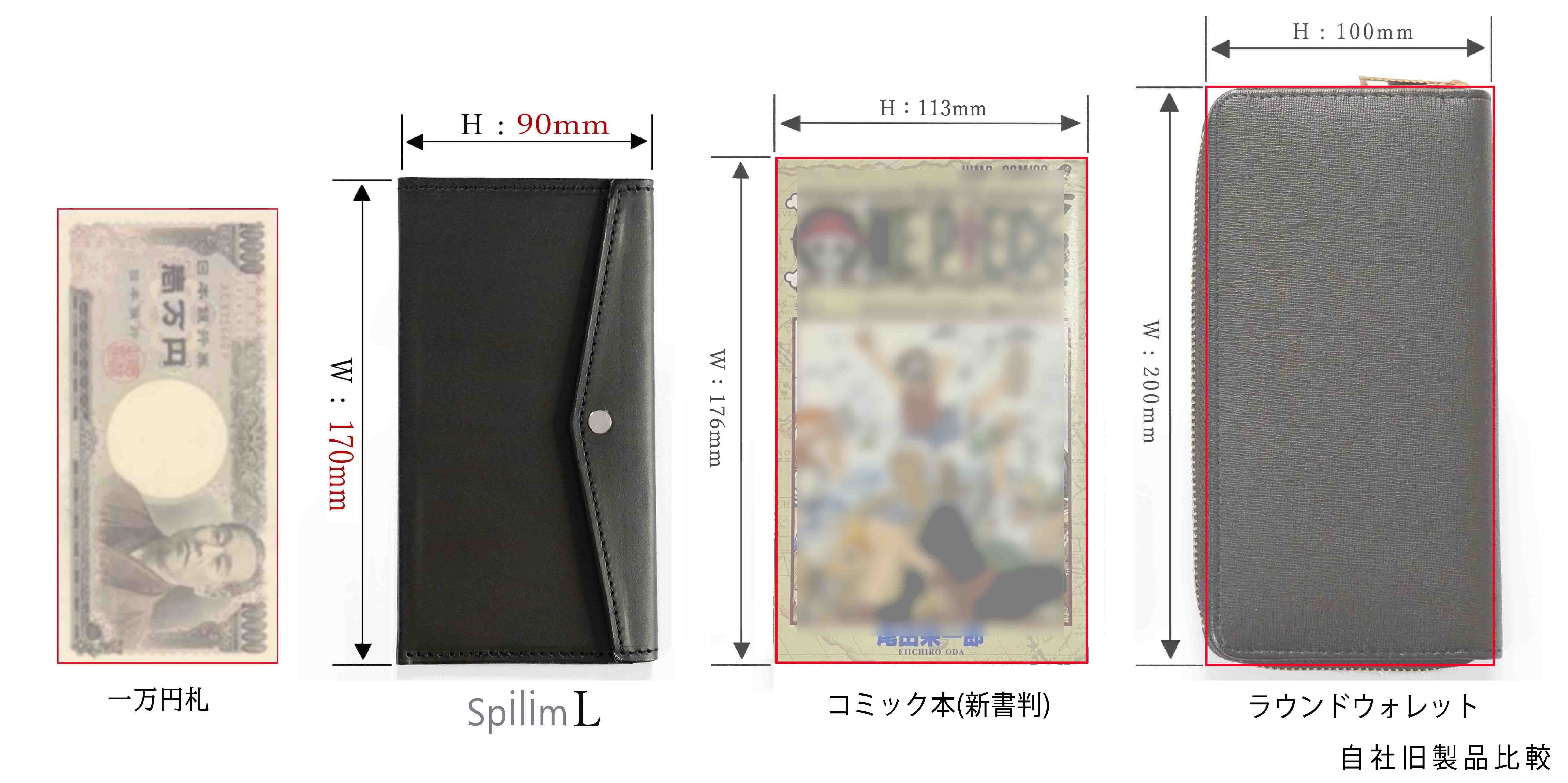 従来のロングウォレットはもちろん、コミック本よりも小さいサイズ