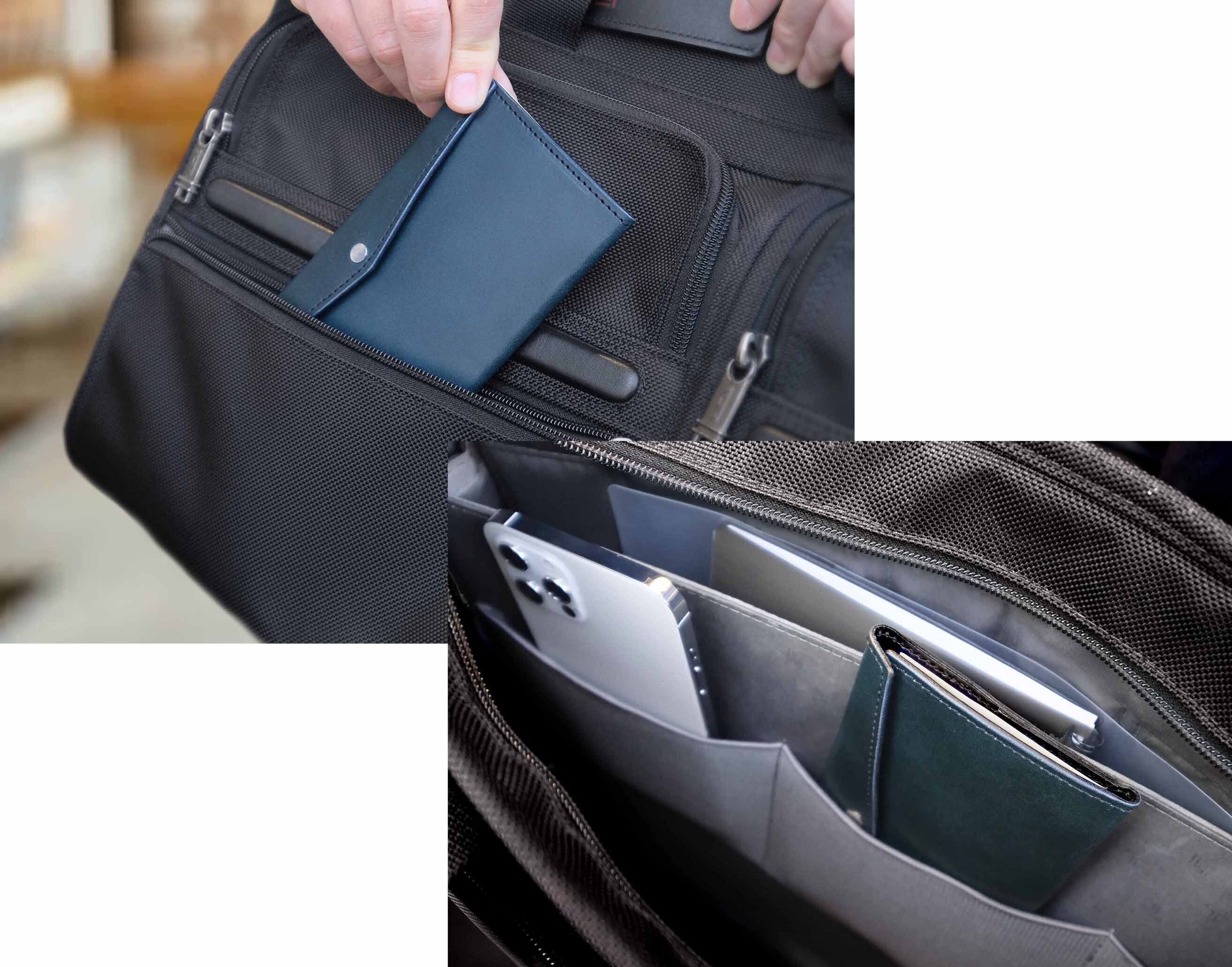■ビジネスバッグの薄いポケットにもスッキリ収まる