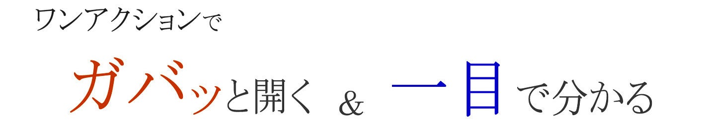 片方は大きくフルオープン、もう片方も半分まで解放することでガバッと大きく開きます。