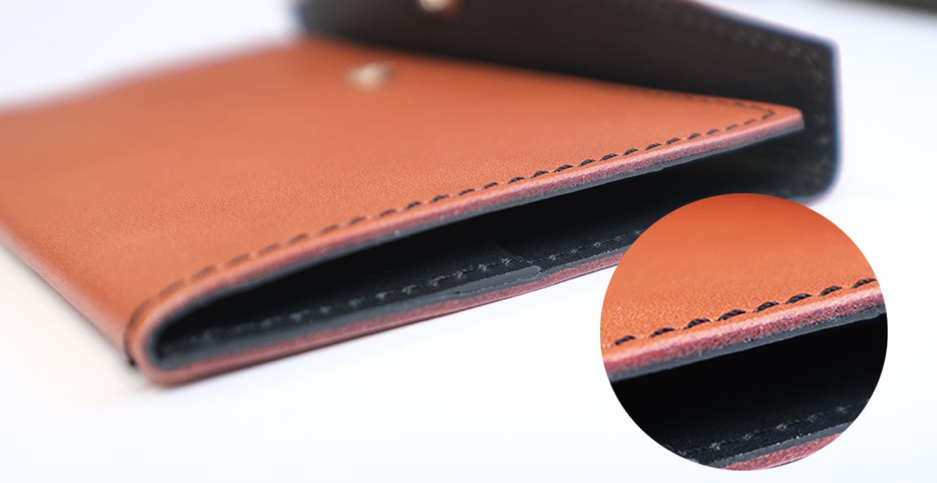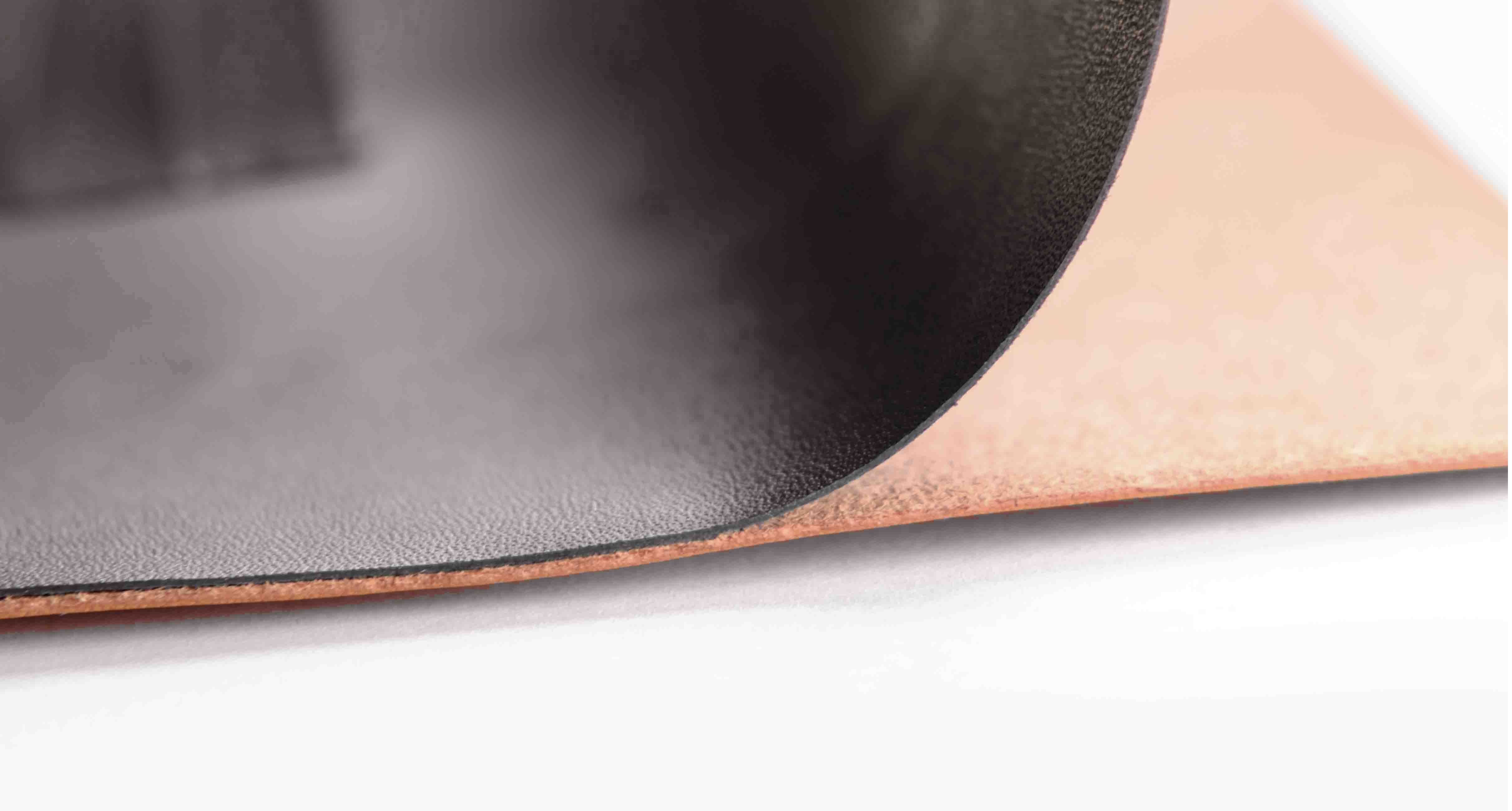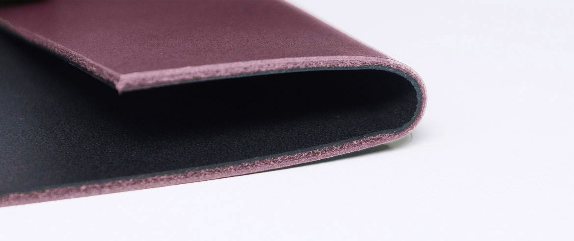 この2枚の革を全面張り合わせることで、薄くても張りのある1枚の革に仕上がります。