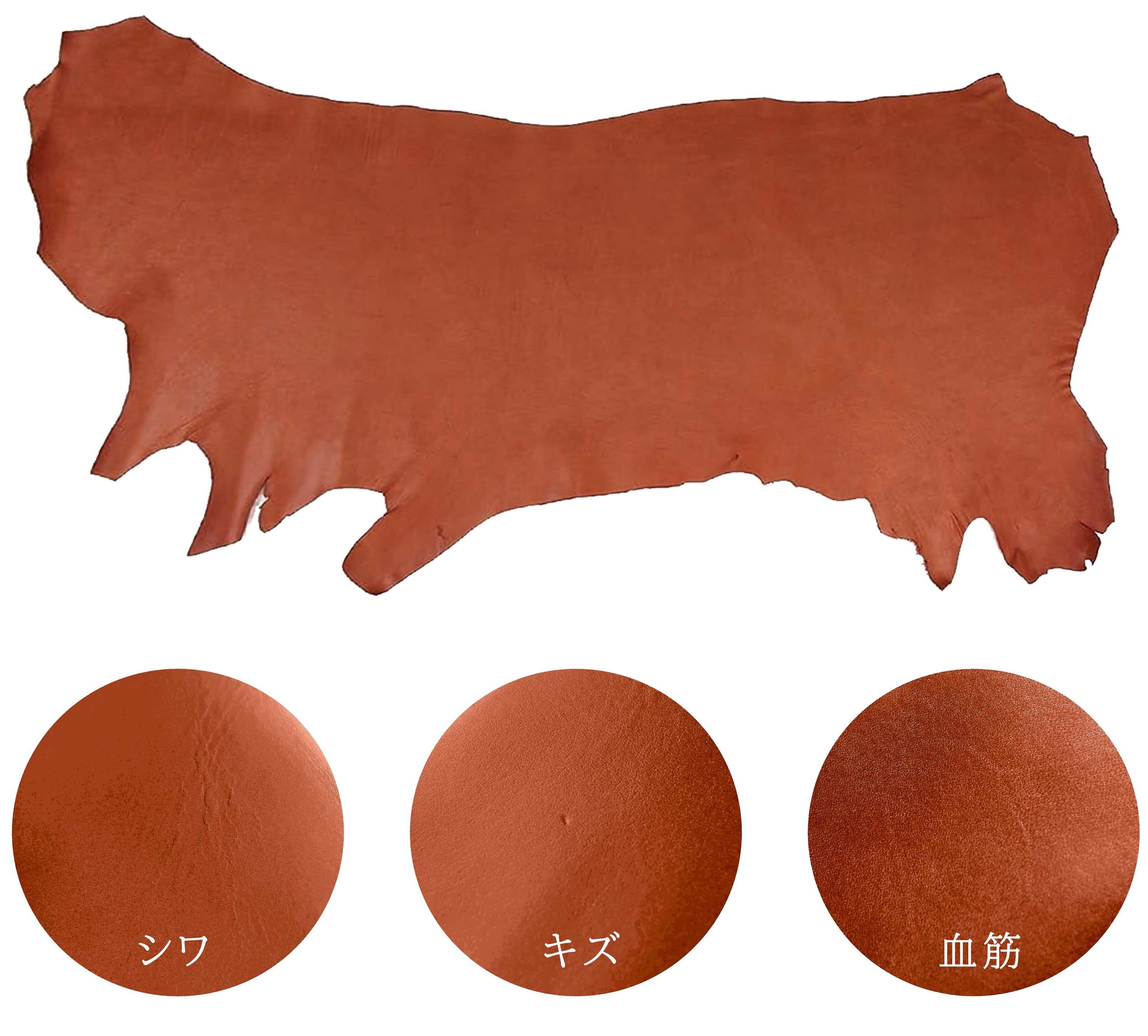 ※革本来の質感をいかしたタンニンレザーの特性上、革の表面に動物生前の傷跡・シワ・血筋等が含まれることがございます。また、 染料仕上げの特性上、色味や色ムラに若干の個体差があります。
