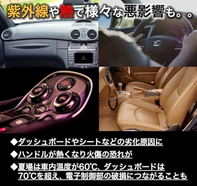 3BLOCKは光のみならず紫外線も99.9%カットだから人の肌だけでなく車のシートや内装なども傷付けにくい!