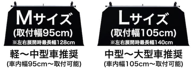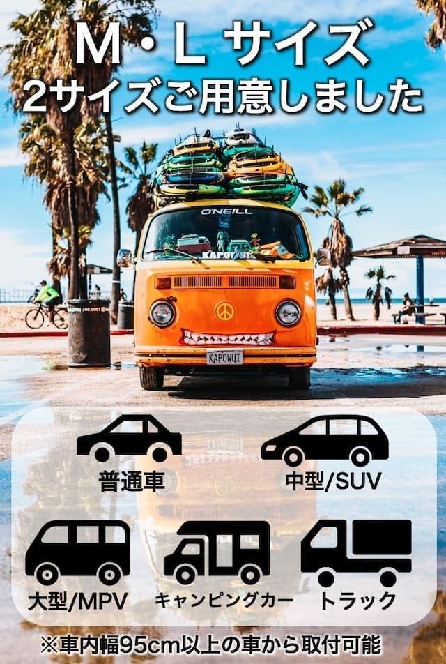 当社調べでは普通乗用車や中型車はMサイズ(95cm)、大型車はLサイズ(105cm)がおすすめです。