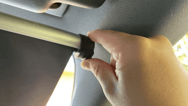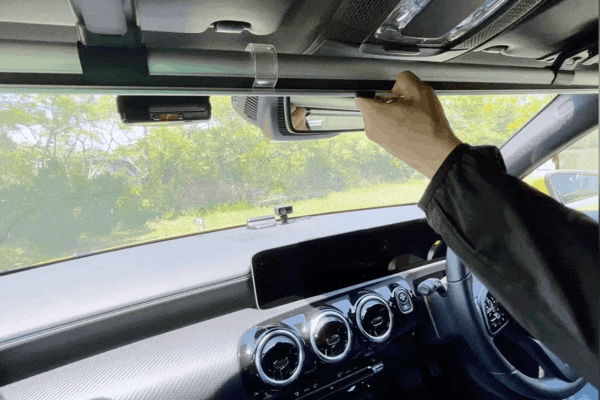 A2:サンバイザーの端っこ(フロントガラス側)とルームミラーの間に6cm以上の幅がない場合使用できなくなる可能性が高いです。また、幅があっても運転席と助手席2つのサンバイザーを使用しているため2つ一緒に下ろす必要がある場合もございます。もし通常のようにサンバイザーを利用する場合は3BLOCKを取り外してご使用ください。
