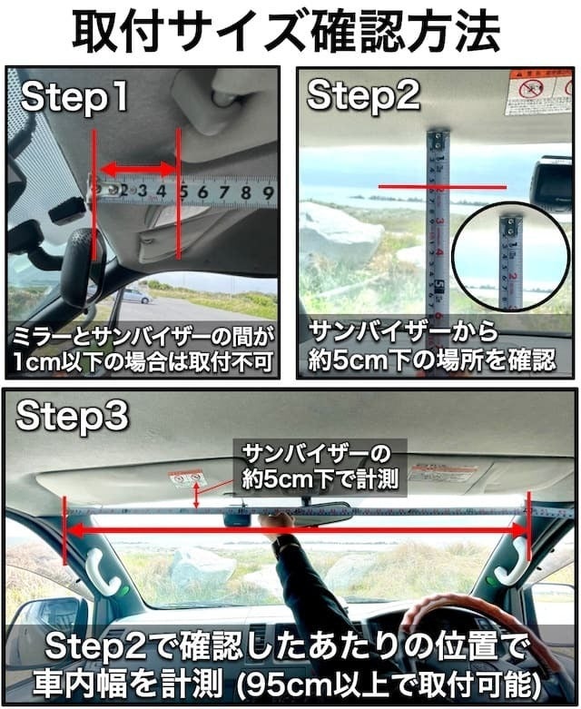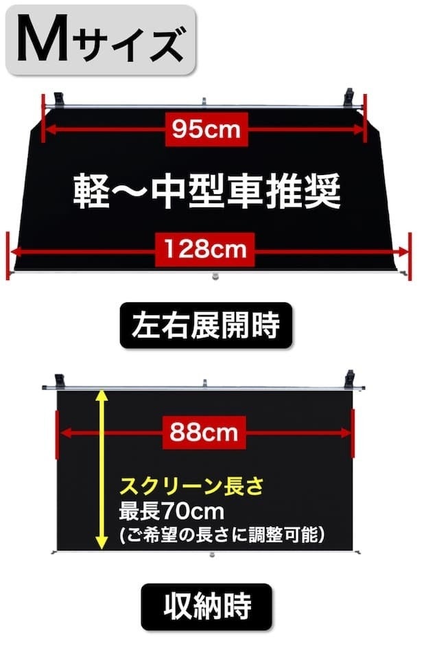 ※スクリーン幅は調整可能で、車内幅が95cm以上あれば基本的に取付は可能。