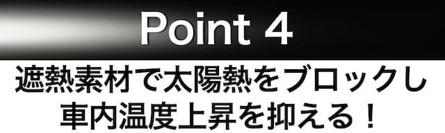 強遮熱生地&高密度シルバーコーティング素材で太陽光線を跳ね返し車内温度上昇を抑えます。