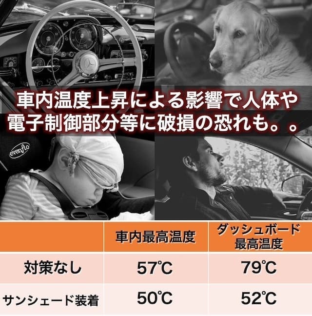 一般的なサンシェード使用時と未使用時の差がダッシュボード温度に関しては27℃の差が!