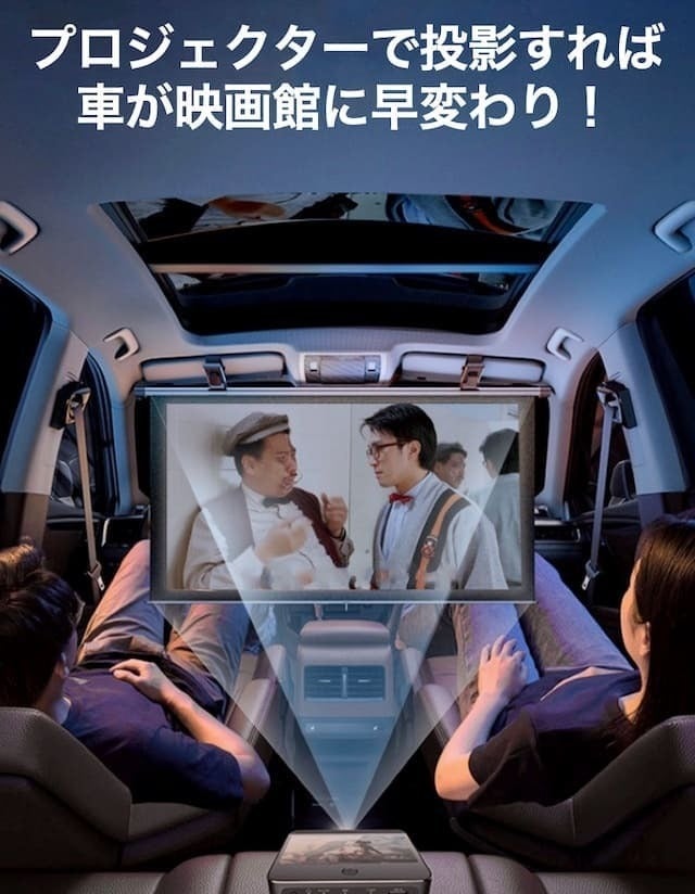 プロジェクターなどで映像や画像を投影すれば、なんと車内が映画館に!
