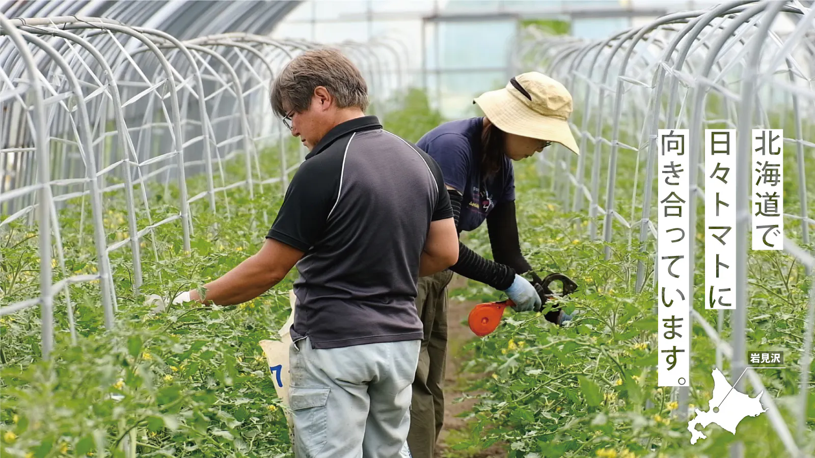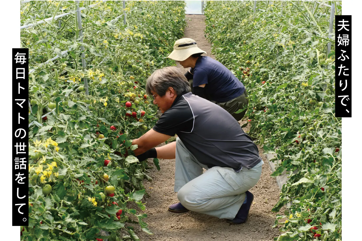私たちは北海道の岩見沢という地域で、夫婦2人でトマトを栽培している農家になります。