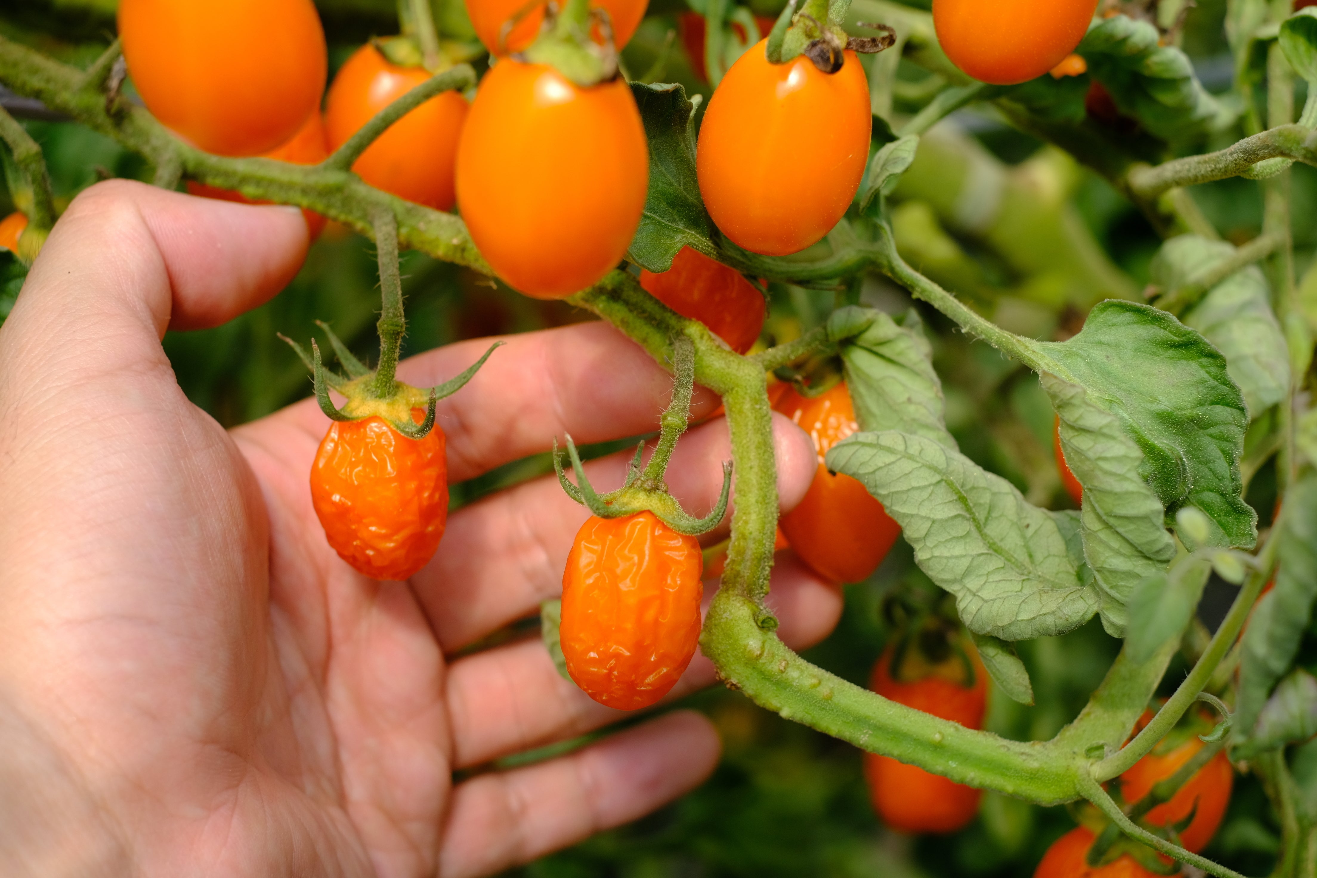 ドライトマトのような見た目をしていますが、青果のままこの状態まで育てているので、収穫後に乾燥させる等の加工は一切行っていない、フレッシュな野菜そのままの状態です。