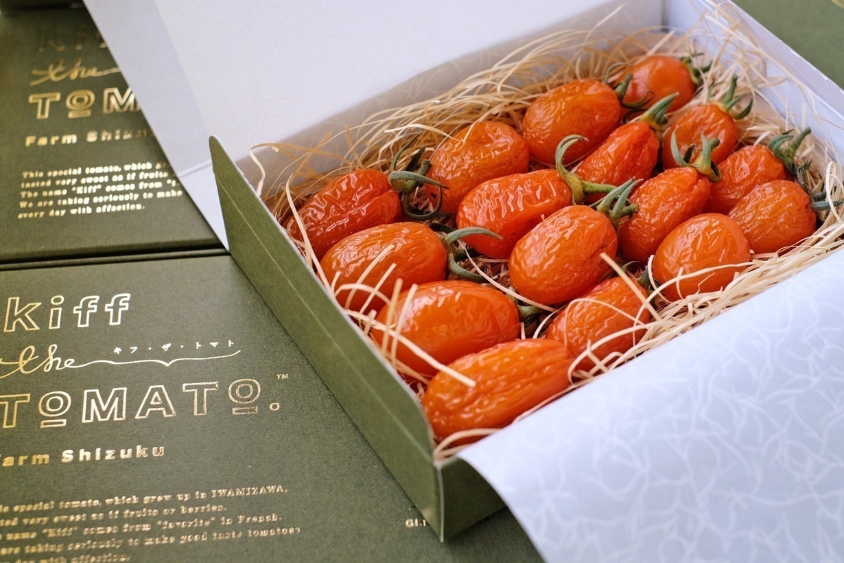 ワイン好きの間で知られている「貴腐ぶどう」を思わせるような、甘みの凝縮された芳醇で濃厚な味わいの果肉。これを楽しんでほしいという思いから「Kiff the TOMATO」という商品名を付けました。