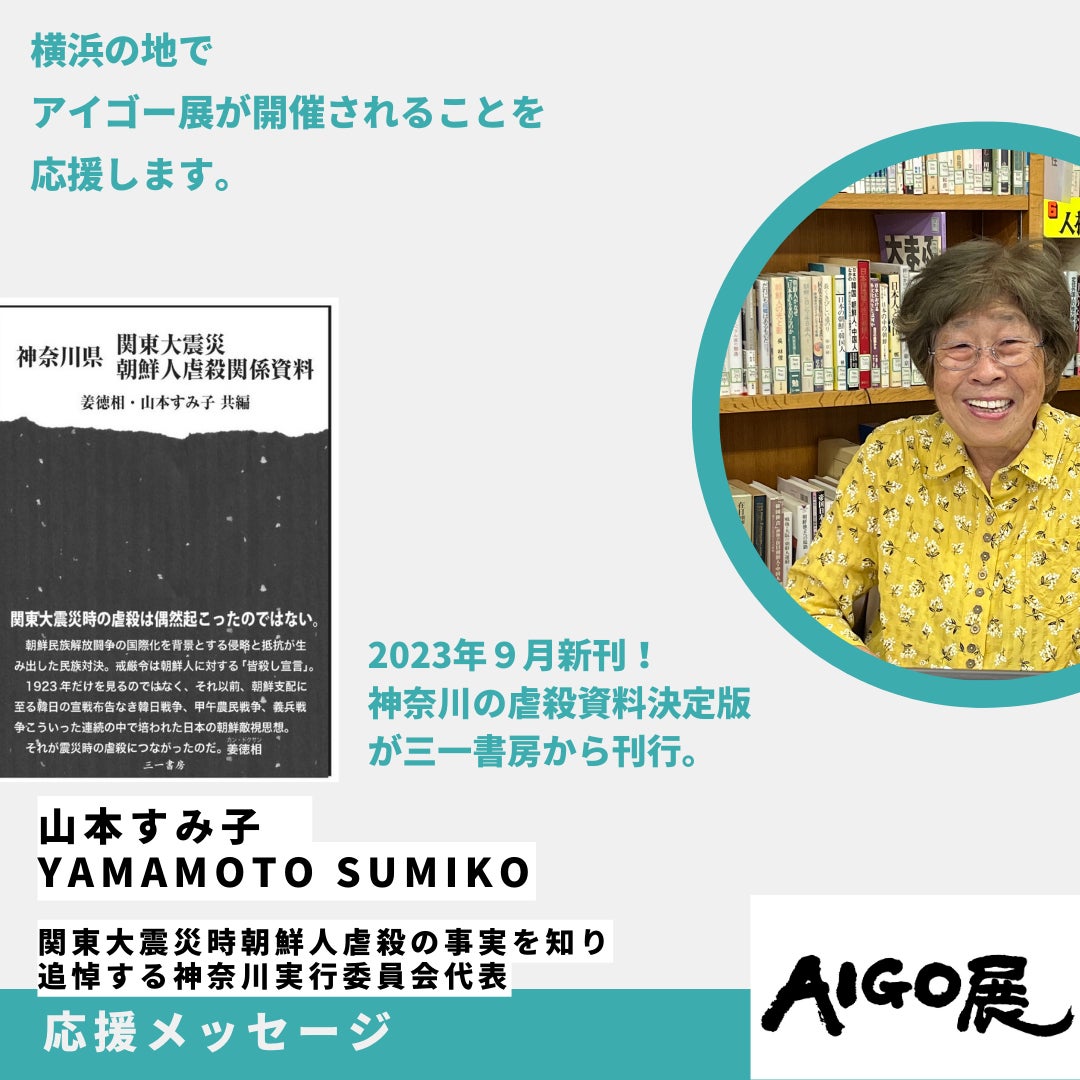 山本すみ子(関東大震災時朝鮮人虐殺の事実を知り追悼する神奈川実行委員会代表)さんからの応援メッセージを紹介します!