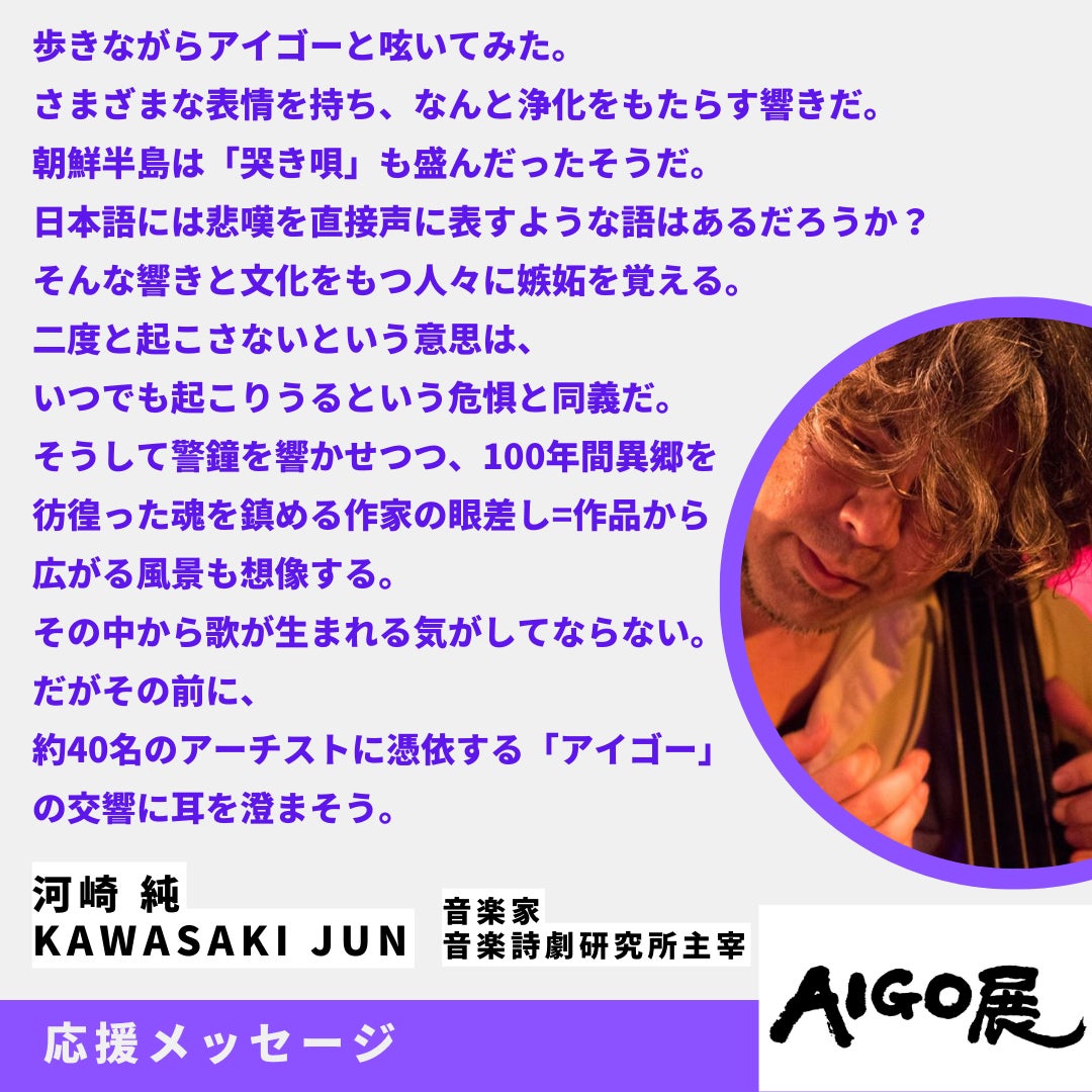 \アイゴ―展クラファン応援メッセージ/ 河崎純(音楽家)さんからの応援メッセージを紹介します!