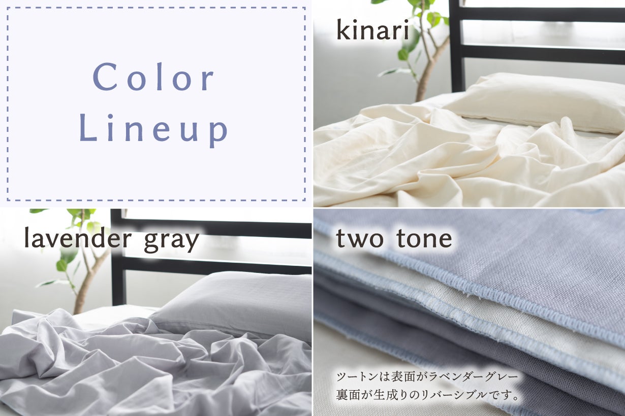 そして、定番の生成り色に加え、使いやすく落ち着きのある色合いのラベンダーグレーが新色として加わりました。