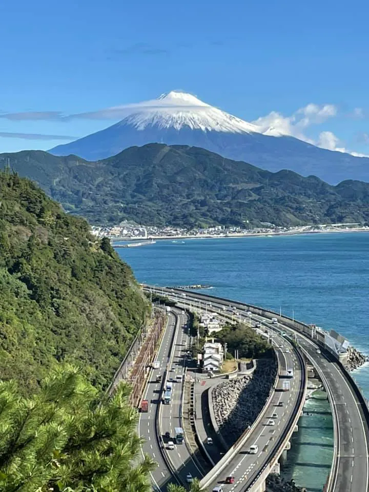 旧東海道の難所といわれた薩埵峠(さったとうげ)からの富士山と駿河湾の景色は、歌川広重の浮世絵『東海道五十三次・由比』にも残されるほどの絶景と呼ばれています。 当農園は、その薩埵峠に近く、静岡市南部のめったに雪の降らない温暖な気候の中、駿河湾を臨む日当たりの良い山の斜面で潮風を受けながら果樹を育てています。