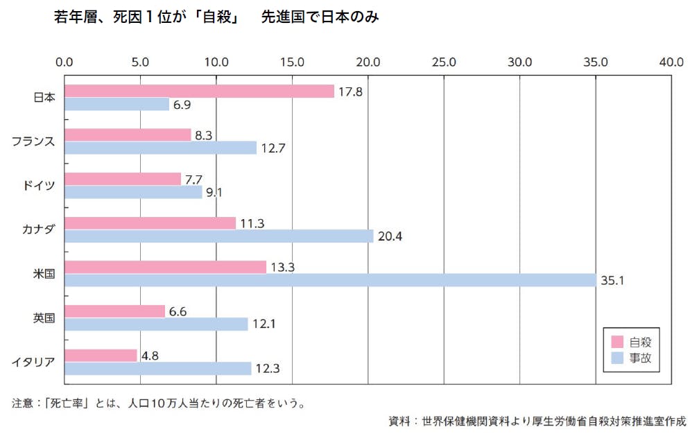 何より悲しい事実が若年層の死因1位が自殺ということです。これは先進国で日本のみです・・・