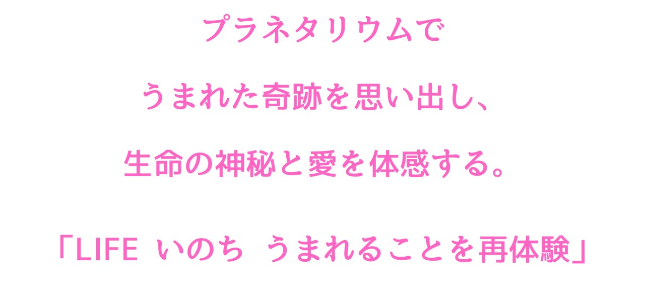 プラネタリウムの半円球ドームを子宮に見立てて上映します。地球の誕生から、生命の誕生まで壮大なスケール感で「生まれること」を体験し、いのちの素晴らしさを再確認できます。