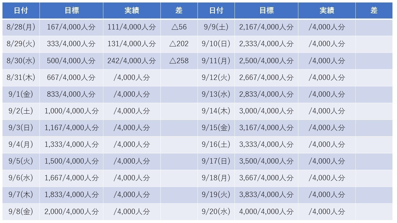 目標到達状況 8/30(募集開始3日目)