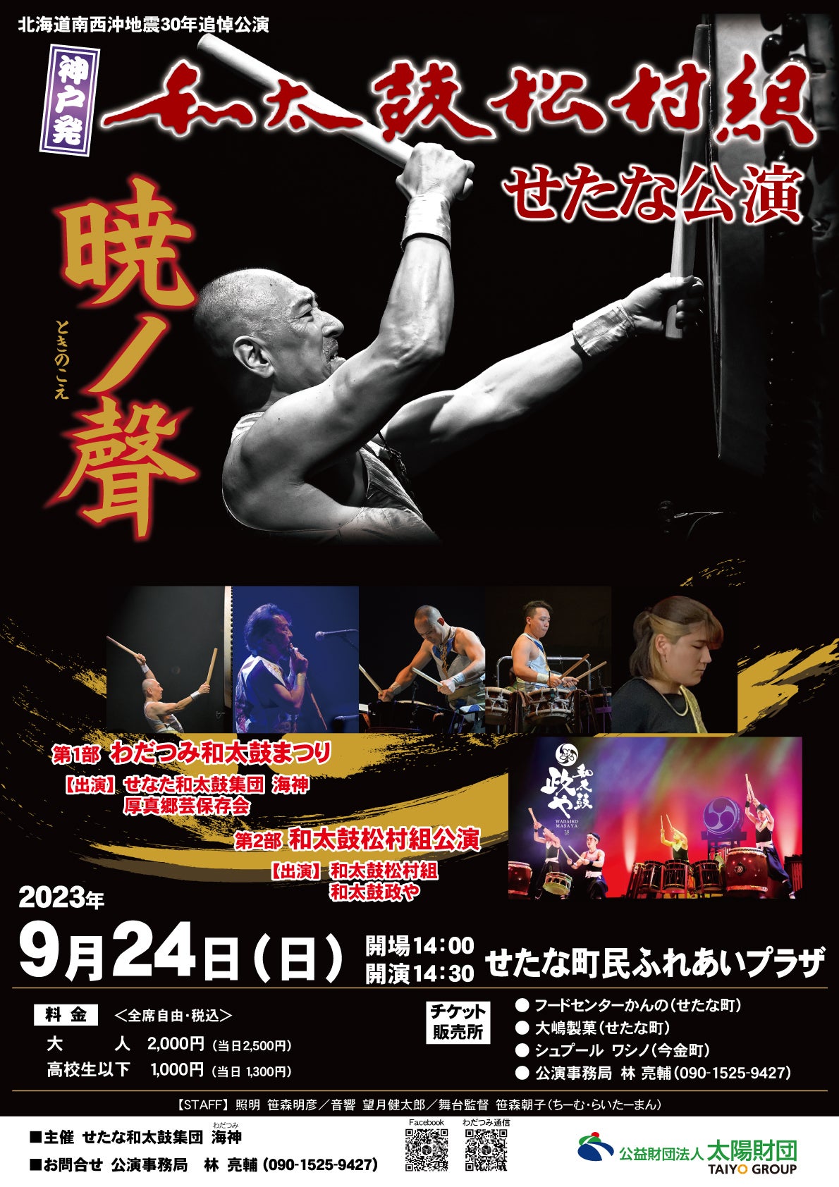 ◆9月24日(日) 北海道南西沖地震30年追悼公演「和太鼓松村組せたな公演ー暁ノ聲(ときのこえ)-」