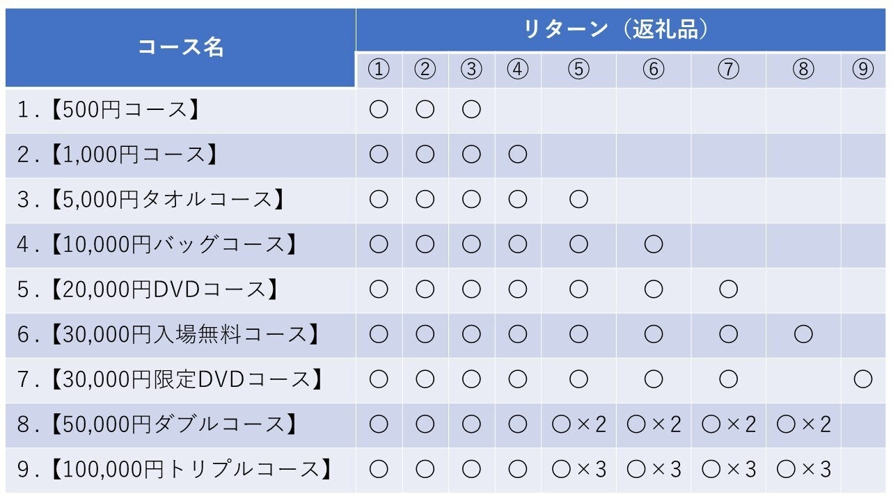 ※公演DVD本体がリターン含まれるのは、5.【20,000DVDコース】以上です。