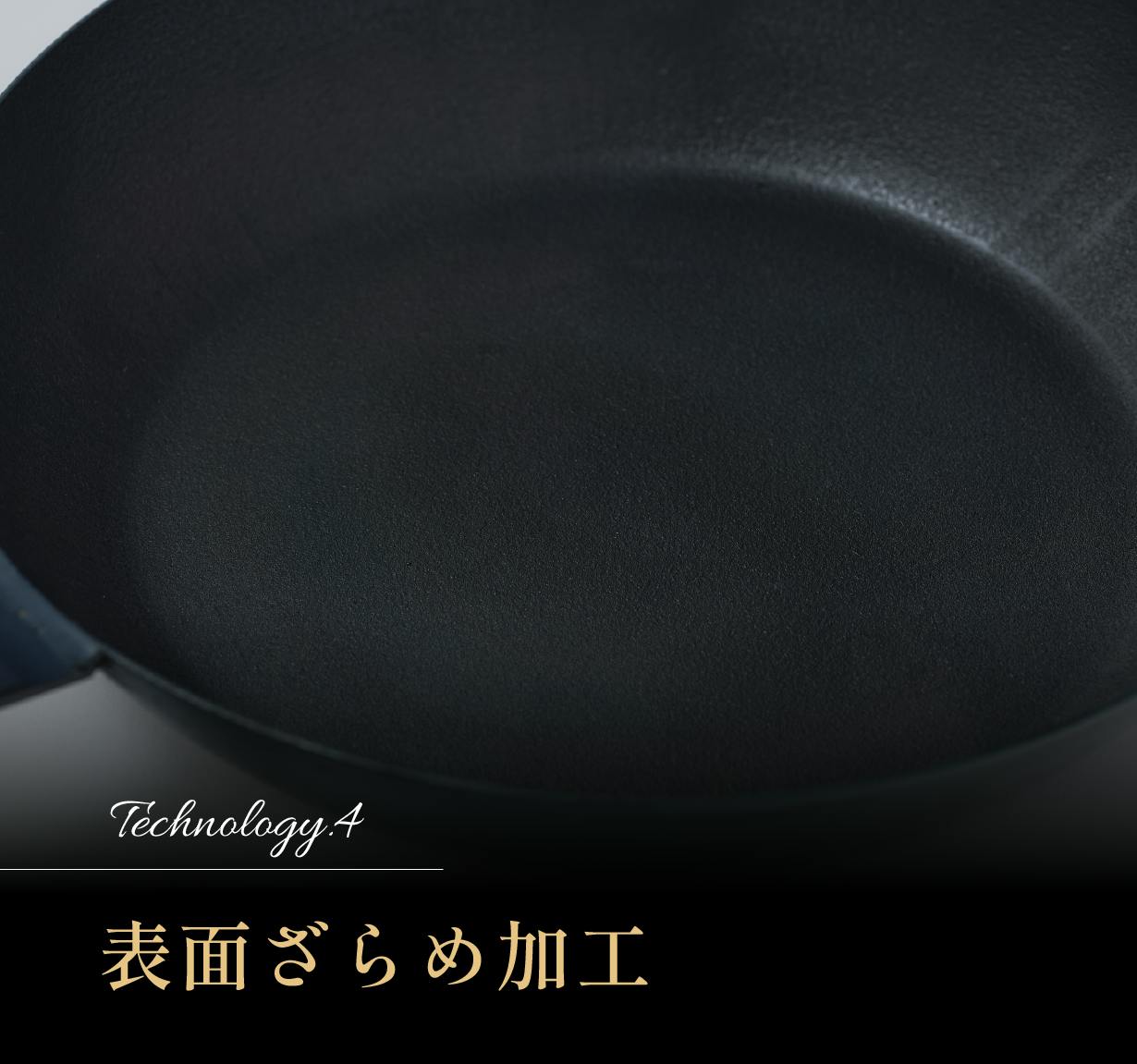 表面ざらめ加工とは、フライパンの表面に微細な凹凸を作り出すことで、料理の焦げ付きを防ぎ食材との接触面積を増やすことを可能にする加工技術のことを指します。
