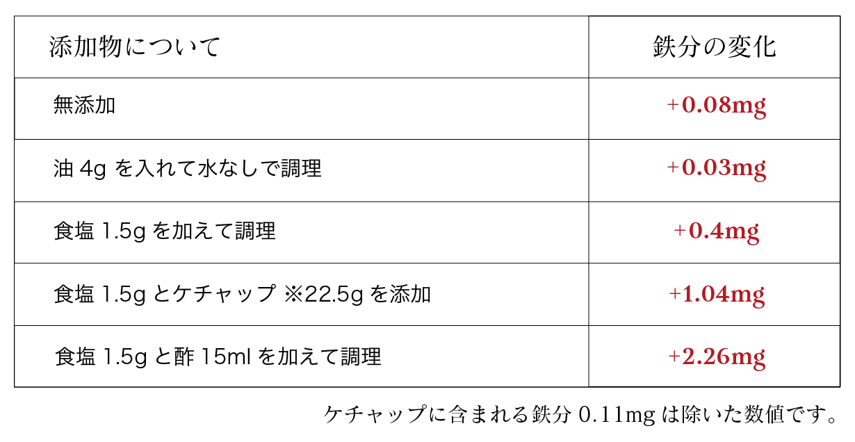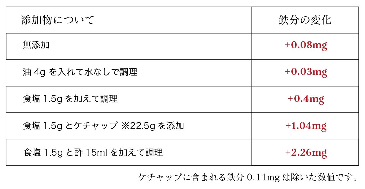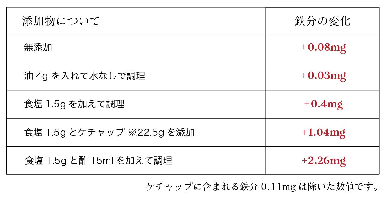 また、鉄分を微量ながら食品に溶け出すことから、鉄分補給にも一役買っています。