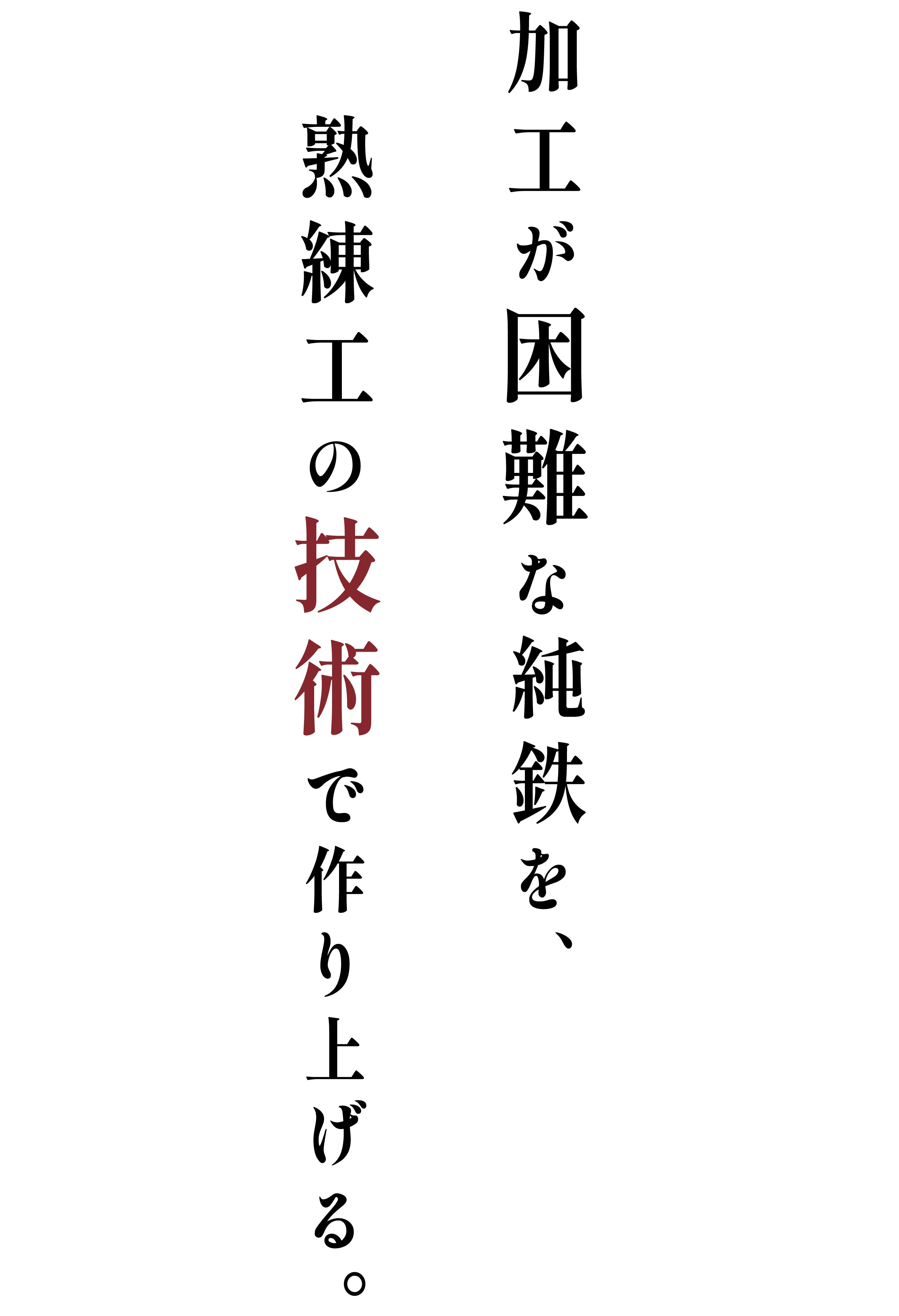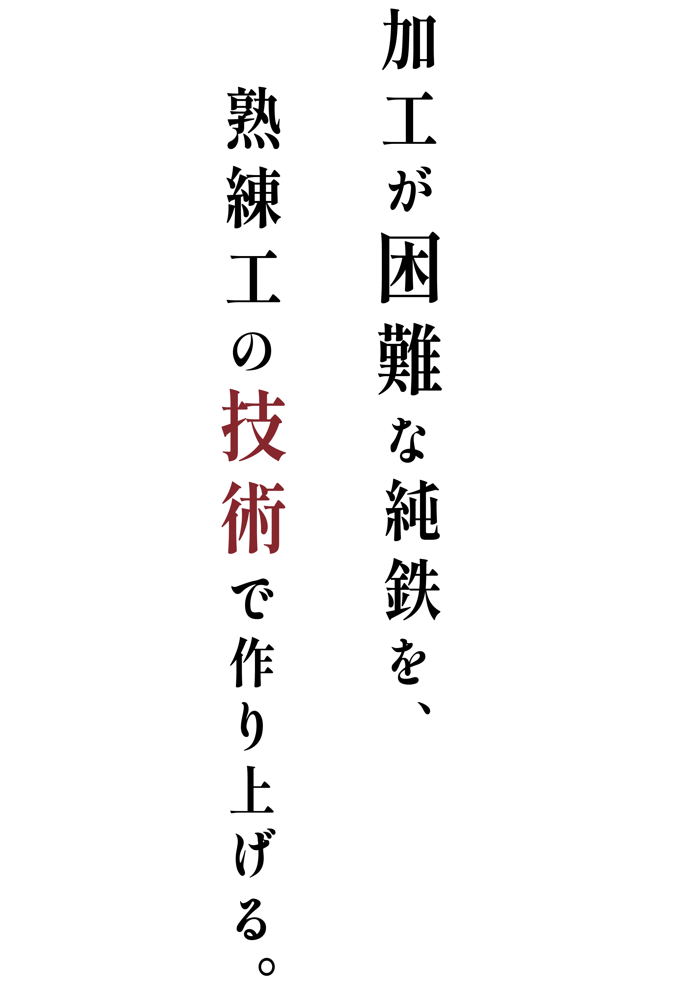 鉄の中でも純度が最も高い純鉄99.9%を採用して作りました。