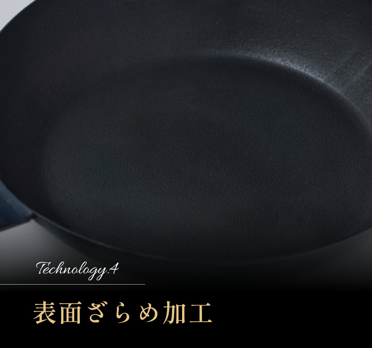 さらに、この加工により、新品のフライパンでもシーズニングの手間を省くことが可能となります。
