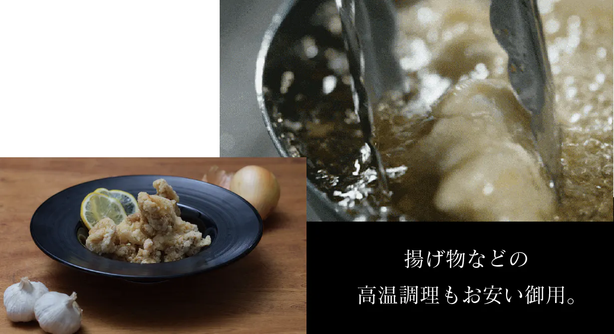 鍋肌に油がしっとりなじんで食材の余分な油分を吸着。