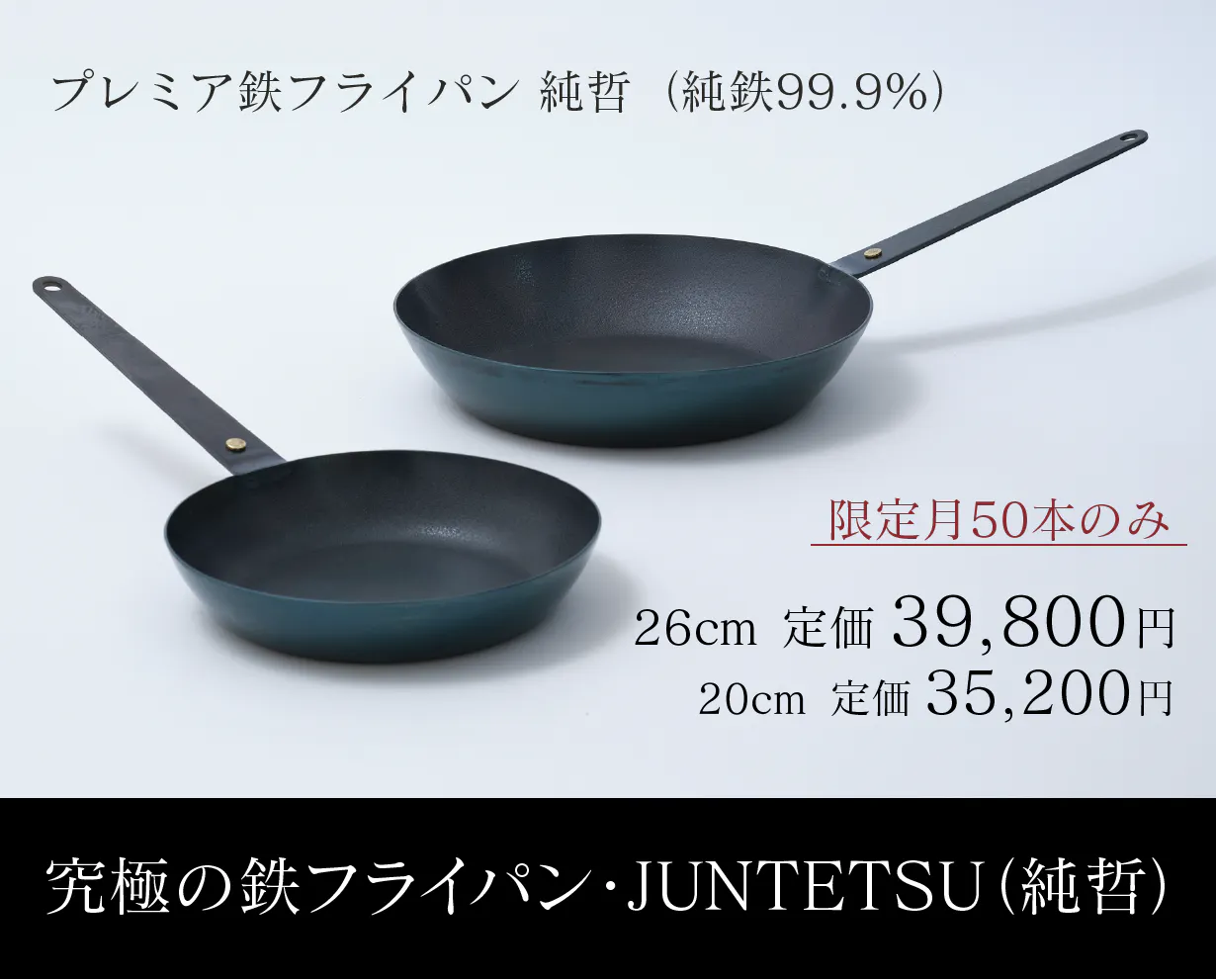 食事を通じた人々の幸せを追求する一環として、至高の鉄フライパン哲(TETSU)と究極の鉄フライパン純哲(JUNTETSU)を生み出しました。