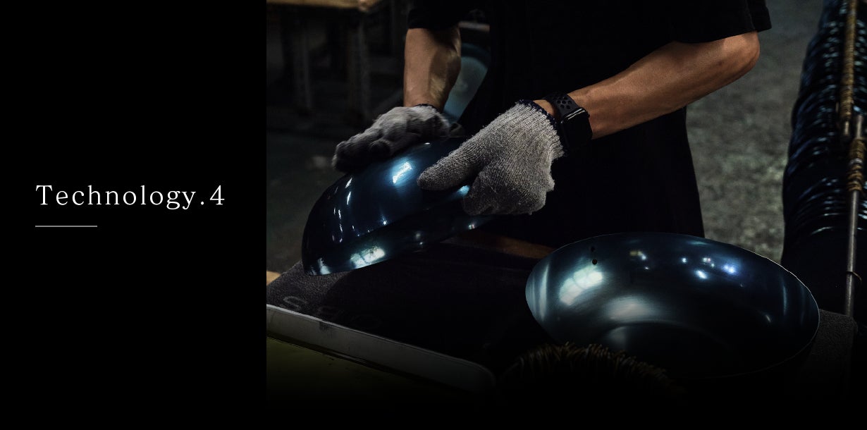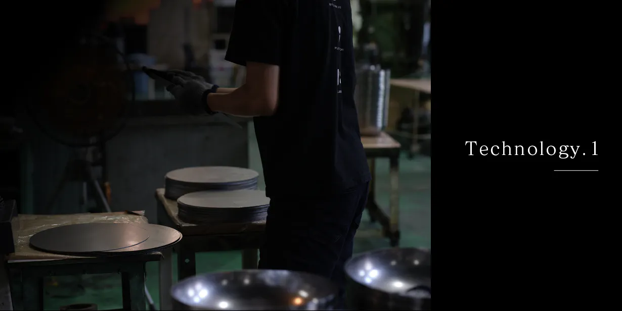 経験豊富な職人が一つ一つ丁寧に手作業で行うことで、優れた品質と使い心地の良いフライパンが作られます。