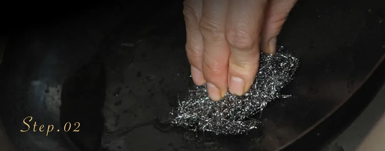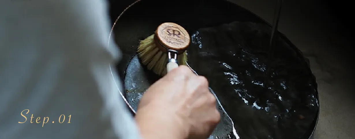 また、使用頻度にもよりますが、定期的に油を薄く塗り、焼き付けるシーズニングも行います。