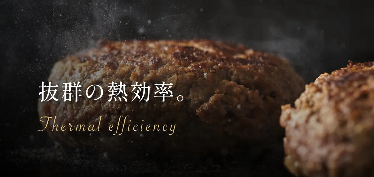 特にステーキー、ハンバーグ、ビーフシチューなど、一度、火を入れてから弱火でじっくり旨味を凝縮しながら焼く、煮ることが可能。