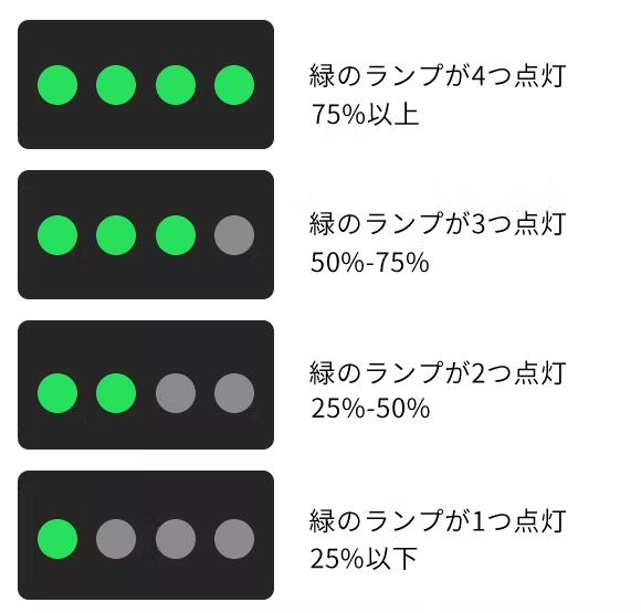 電源残量は4段階で表示されますので、バッテリー残量が一目でわかります。