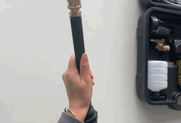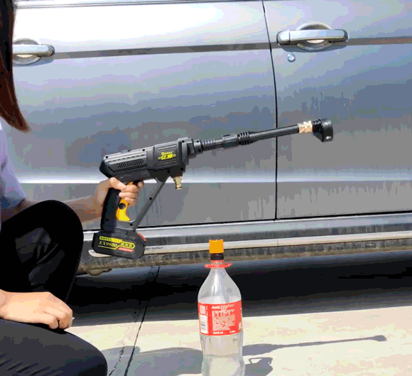 バッテリーを本体に取り付けて電源をオンにすると洗浄可能な簡単操作!コンセントへの接続は不要で、屋外の駐車場や公園、広場などのアウトドアシーンでも気軽に使用できます。