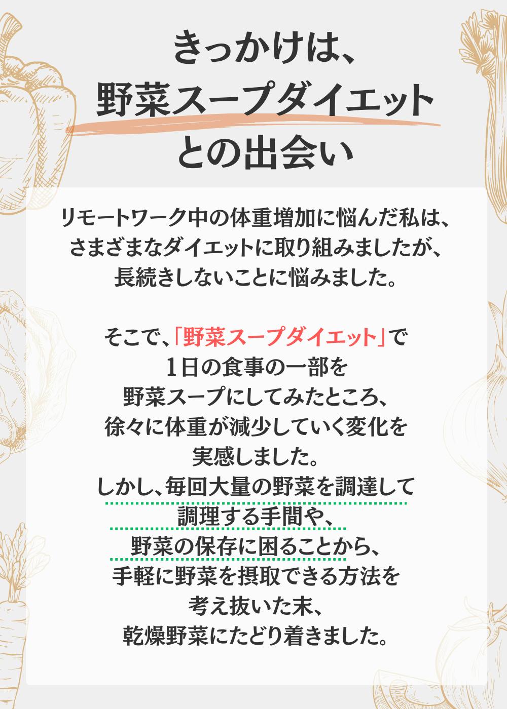 毎日の食事に手軽に加えるだけで、野菜不足の心配を解消し、健康的な食生活を実現しましょう。